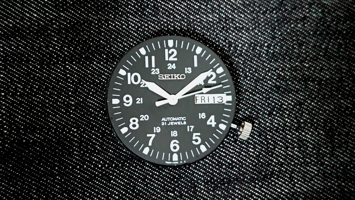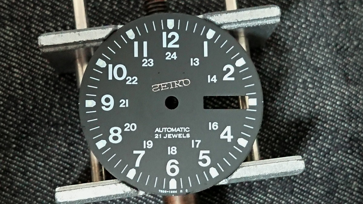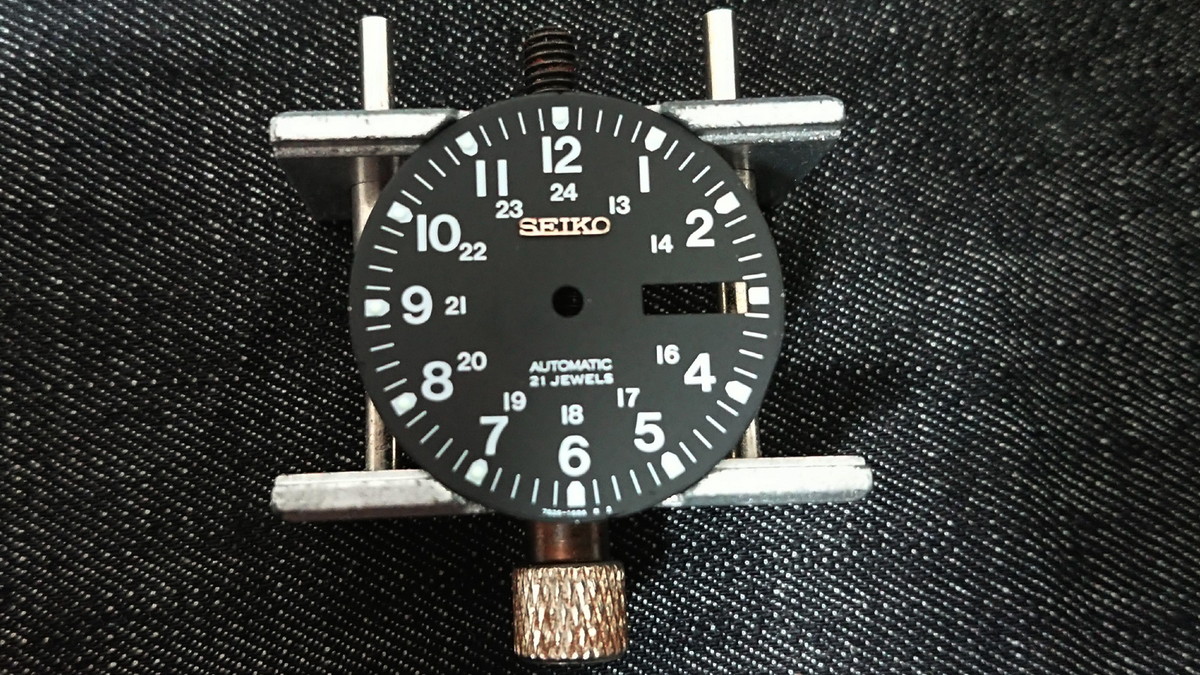 ▲金属製の「SEIKO」ロゴがポロッと剥がれて5時付近に転がっています