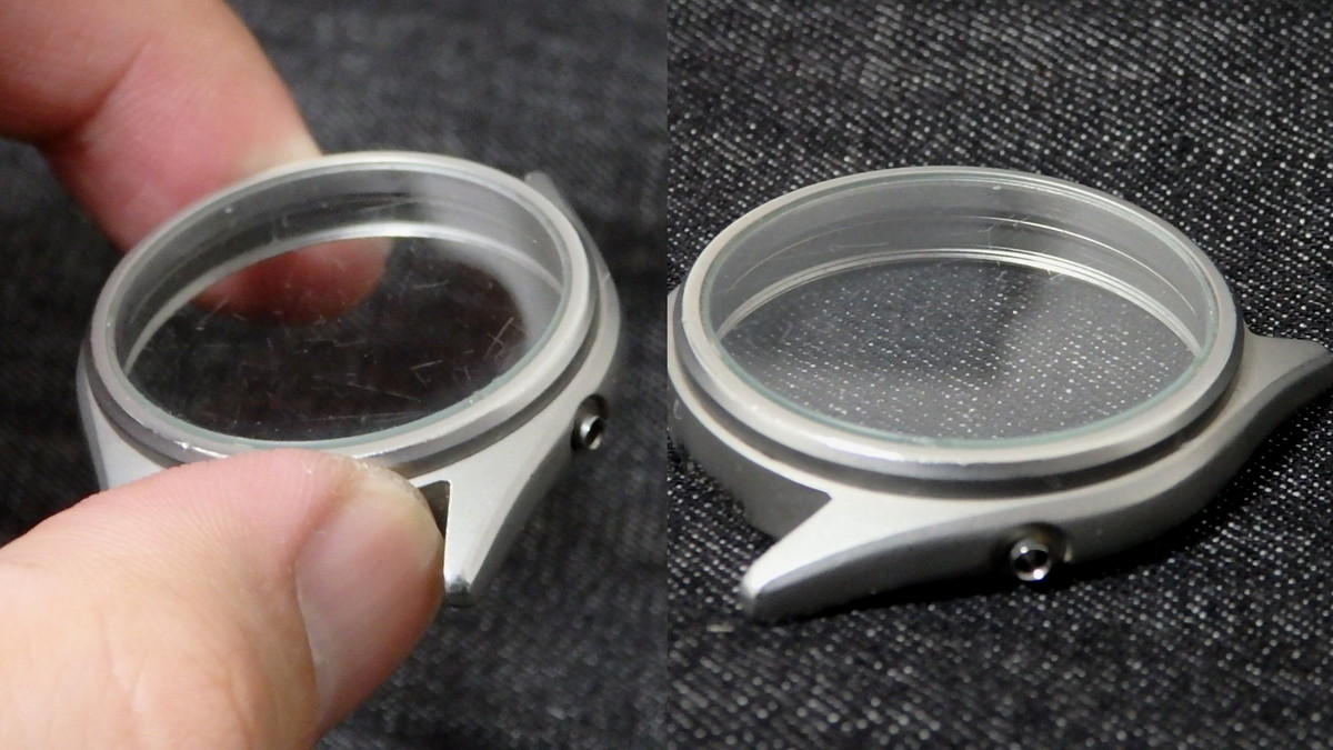 このミネラルガラスに入った小キズというのが結構厄介で、研磨で消そうと思えば消せるのですが、それなりに硬いのでなかなかに研磨が大変なのです。パーツ代も数百〜1000円は超えないくらいなので、ミネラルガラス風防にキズが入った場合、メーカーや時計店に修理を依頼すると大体は交換対象となります。