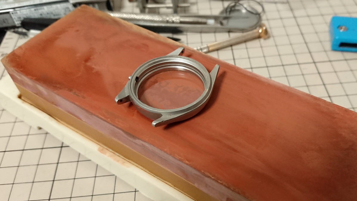 ですが、私のようなアマチュアの時計修理に、「採算」や「納期」なんて言葉はありません。そこにあるのは修理を「趣味」として楽しむこと。パーツ代の数百円を惜しみ、伊達と酔狂でこのガラス風防を研磨することにしました。