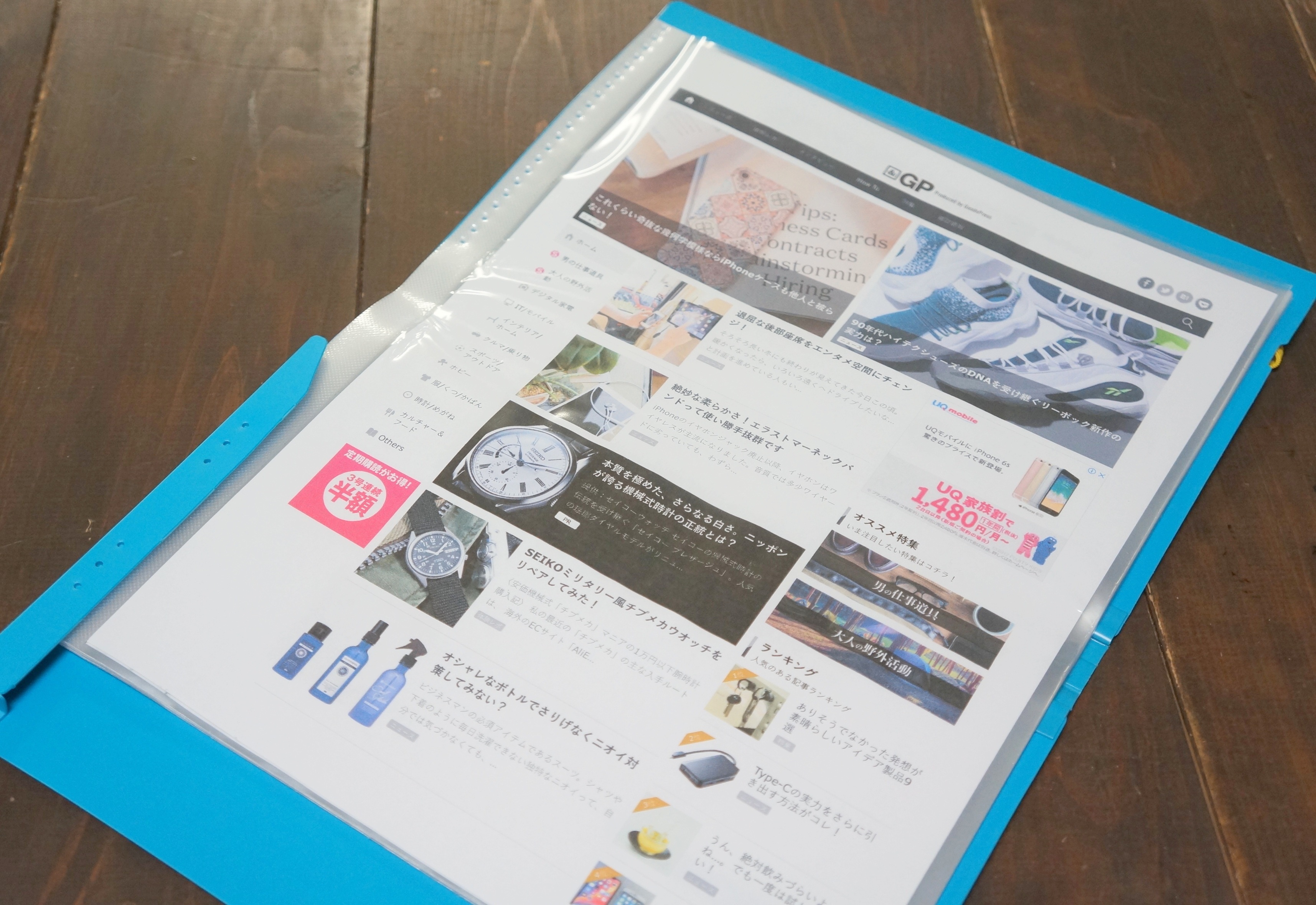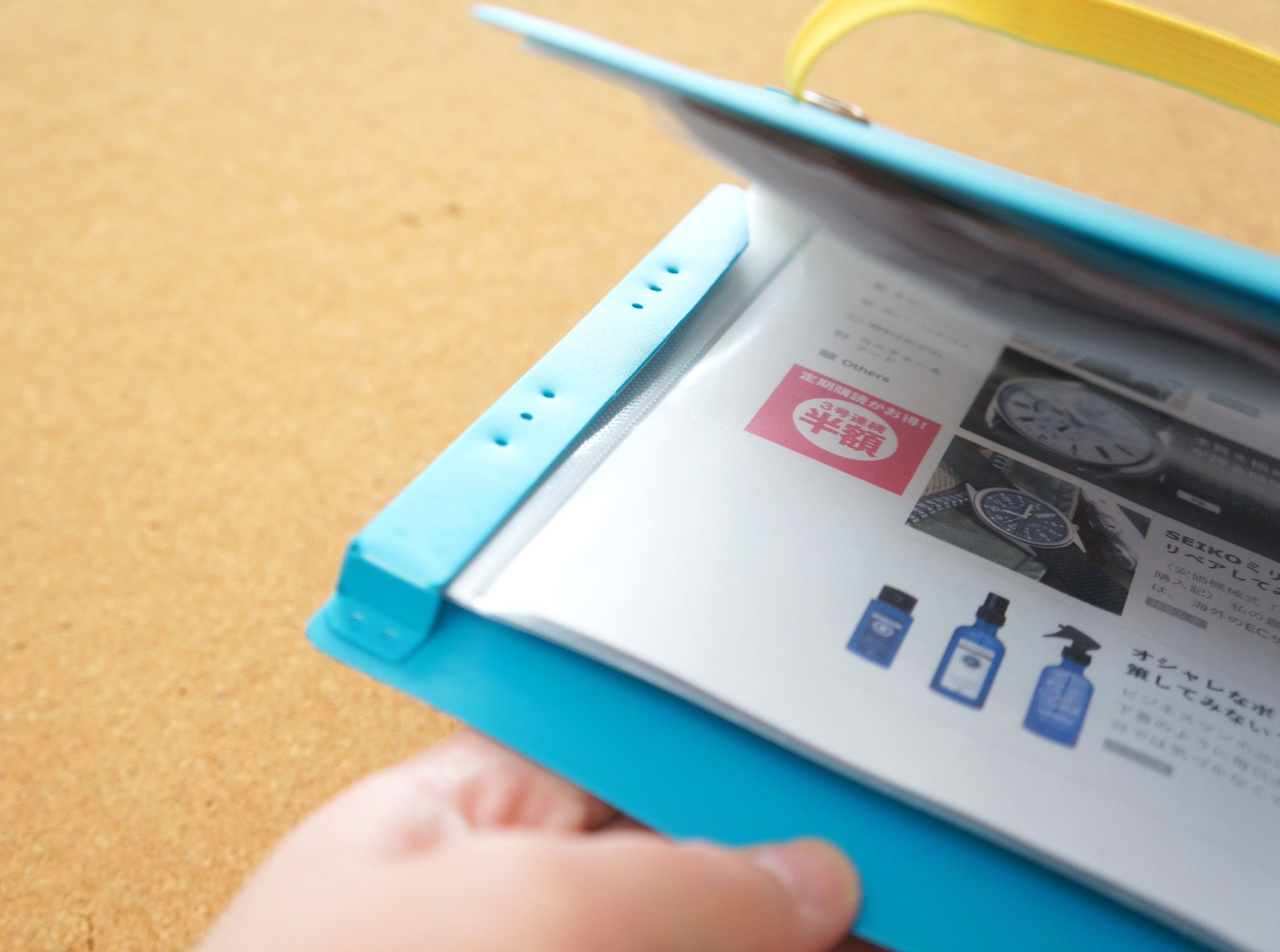 また、カラバリがオレンジ、黄、水色、ネイビー、白、黒と豊富なのも高ポイント。書類をまとめるバンドがアクセントカラーになっていて、これひとつを持っていると文具の“オシャレ度”が増します。書類をコンパクトに、またきれいな状態で持ち運びたい人はぜひお試しを。