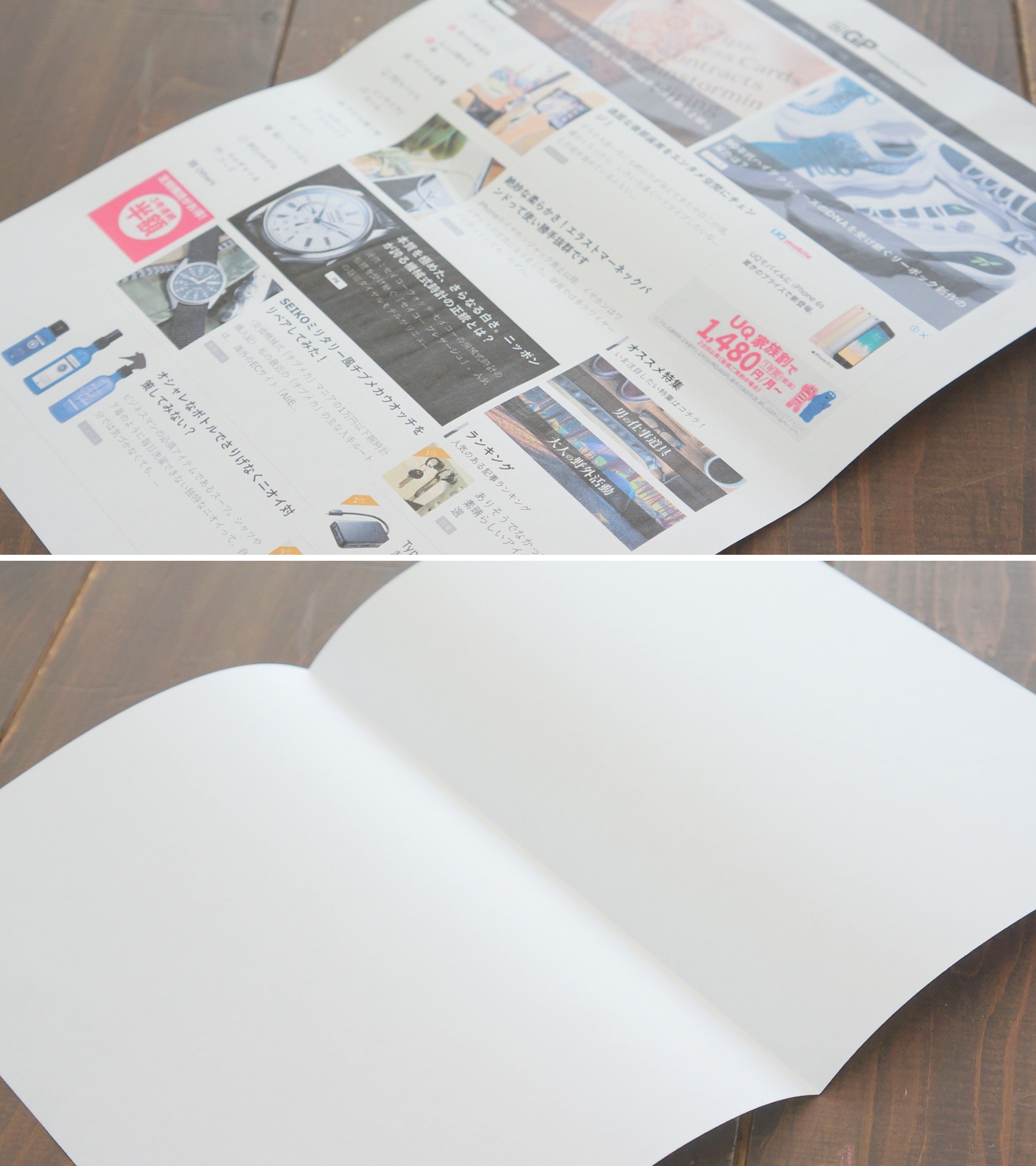 開いた状態の「コンパック」では、中の書類をパラパラめくって確認できます。個人的には、各ページをフラットに近い状態でめくれたのを魅力に感じました。これなら、2枚の書類を見開きにするとき便利です。