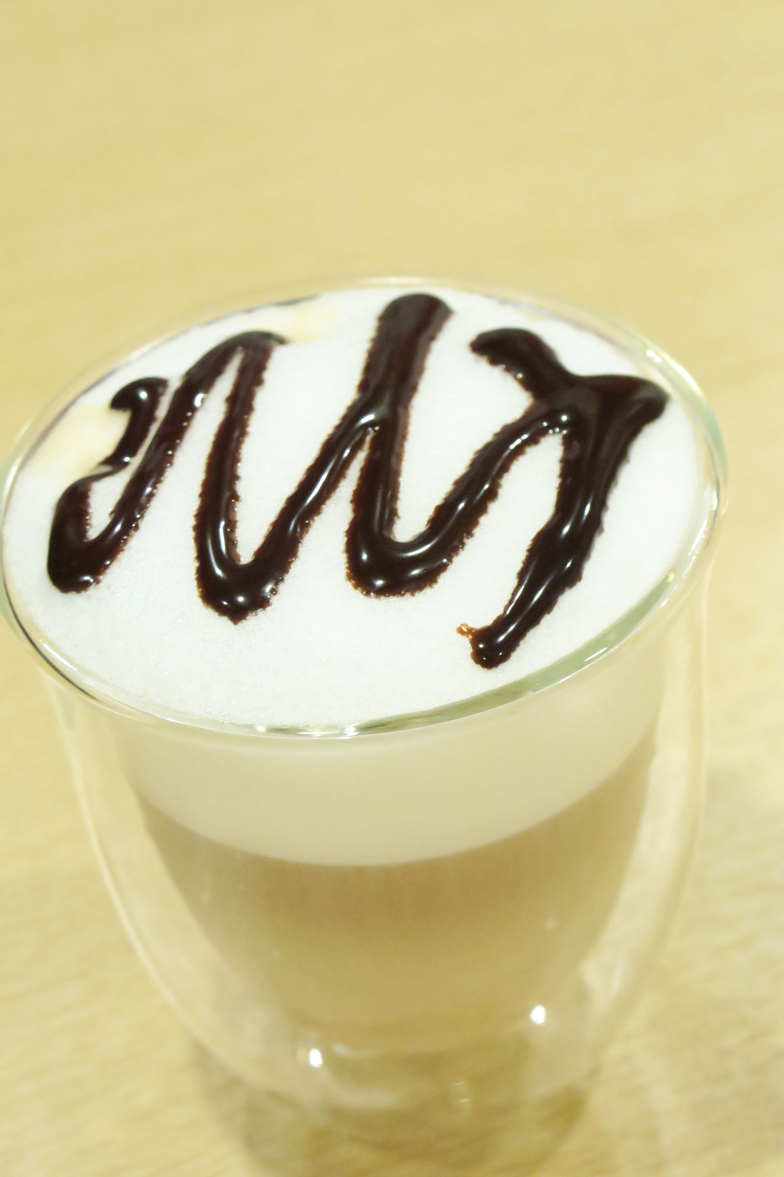 シロップは後入れでもOKですが、先に入れておいてエスプレッソやミルクをそっと注ぐと、液体が美しい層をなし目を楽しませてくれます。ちょっともったいないですが、飲む時は良くかき混ぜて飲んで下さいね。
