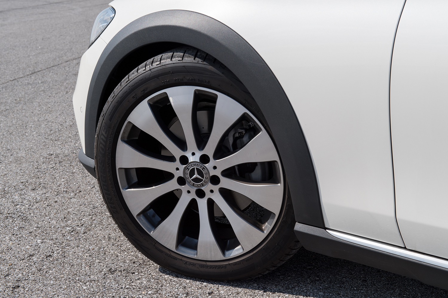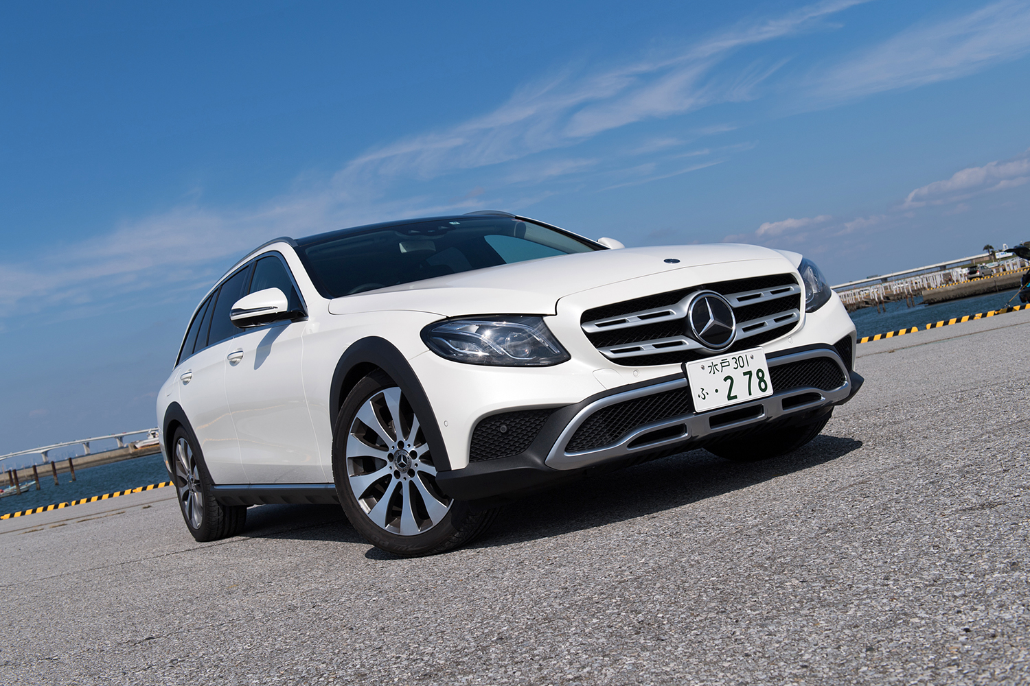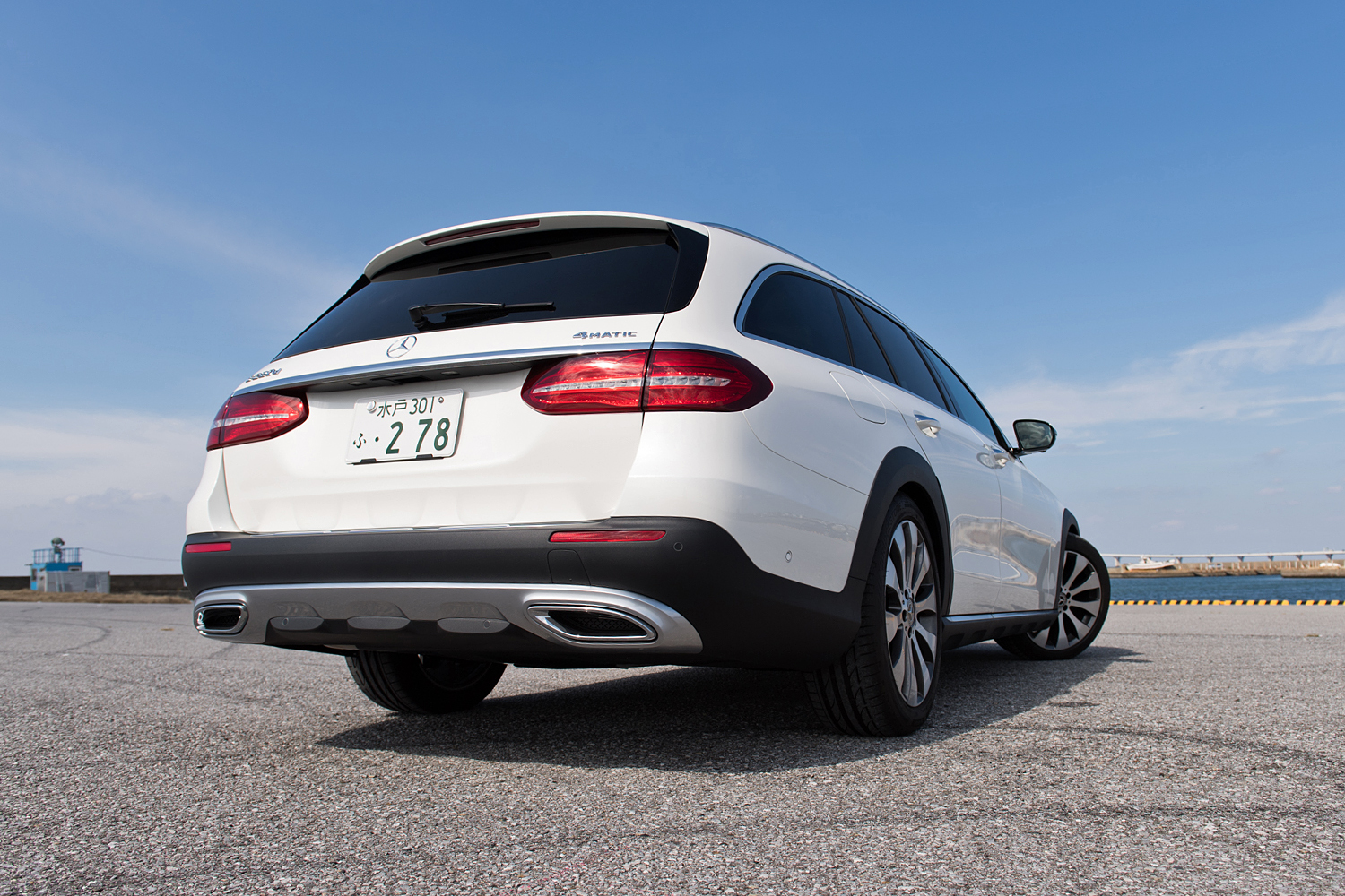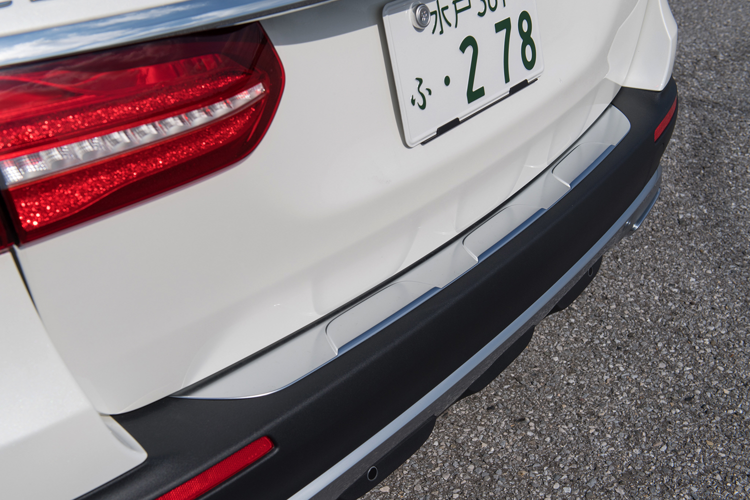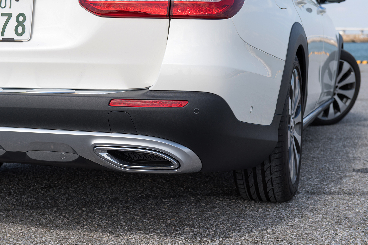 エクステリアにおけるEクラスワゴンとの相違点としては、シルバーの加飾が施される専用デザインの前後パンパー、マットブラックのホイールアーチカバー、SUVスタイルのラジエターグリルが与えられたことが挙げられます。また、タイヤサイズが225/55R17から245/45R19へ拡大したことや、地上高が25mmアップされたこと、それにより、着座位置がやや高めとなったことも、SUVらしさを感じさせる部分といえるでしょう。