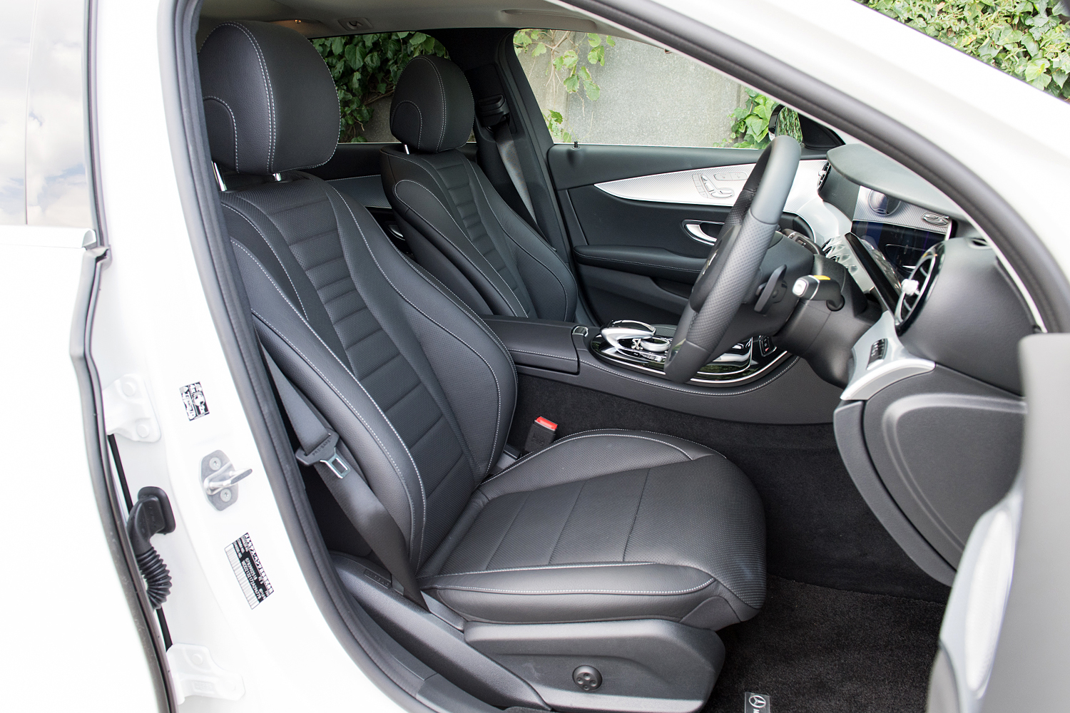 とはいえ、エクステリアはひと目でEクラスと分かるものですし、ボディサイズも全長4950mm(「E220d ステーションワゴン アバンギャルド」比でプラス10mm)、全幅1860mm(同プラス10mm)、全高1495mm(同プラス30mm)と、Eクラスワゴンに準じたものとなっています。また、装備面もEクラスワゴンに準じており、安全運転支援システム“インテリジェントドライブ”のほか、360度カメラシステムやパーキングパイロットなど、思いつく限りの最新電子デバイスを備えていますし、ヒーター付きレザーシートをはじめ、快適装備についても同クラスをリードするものとなっています。