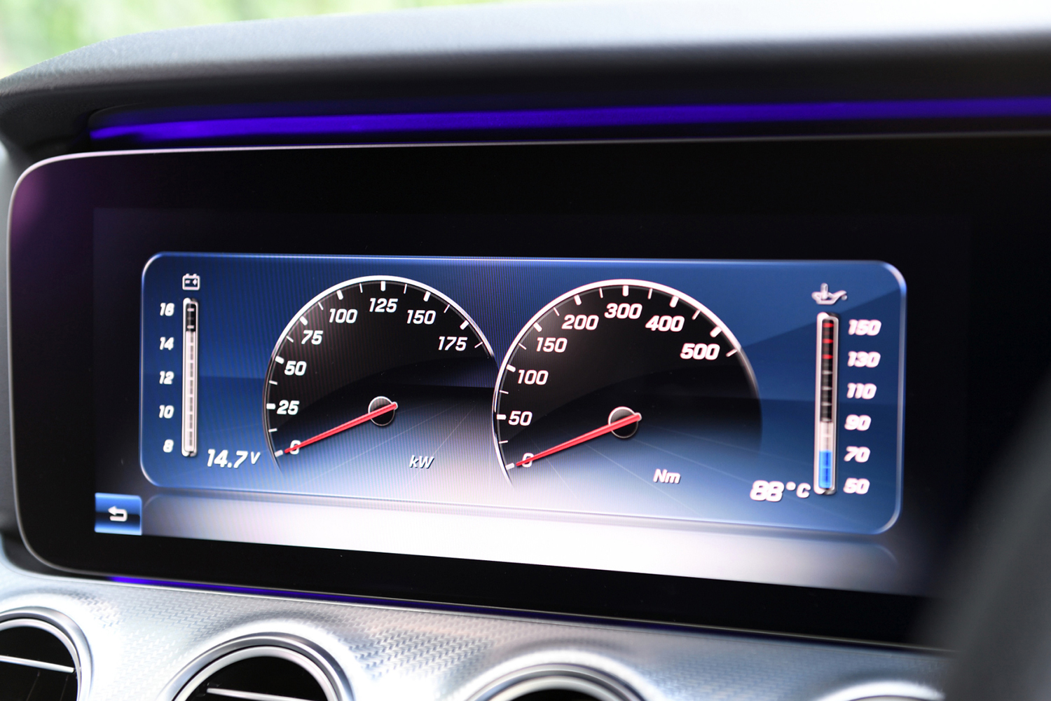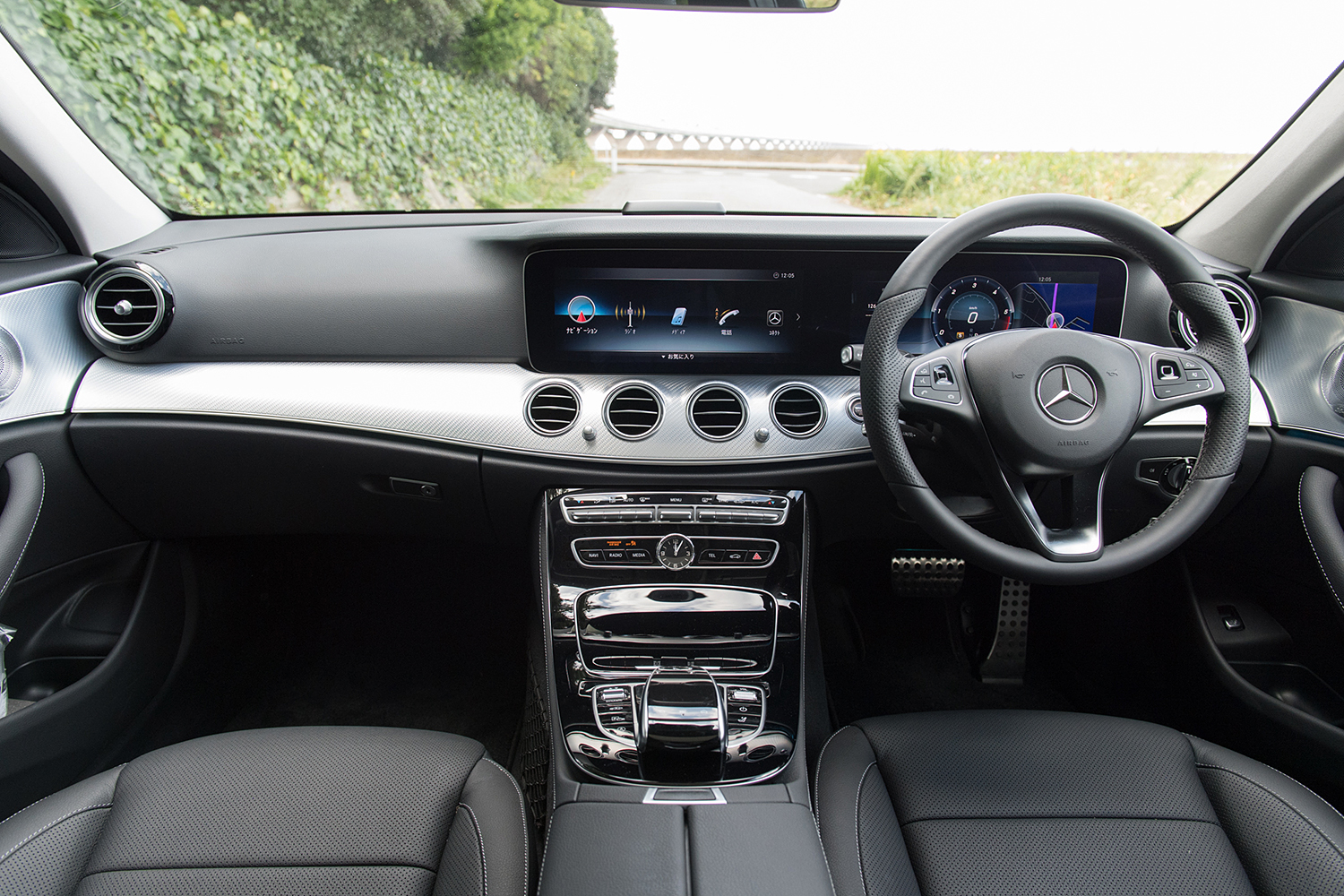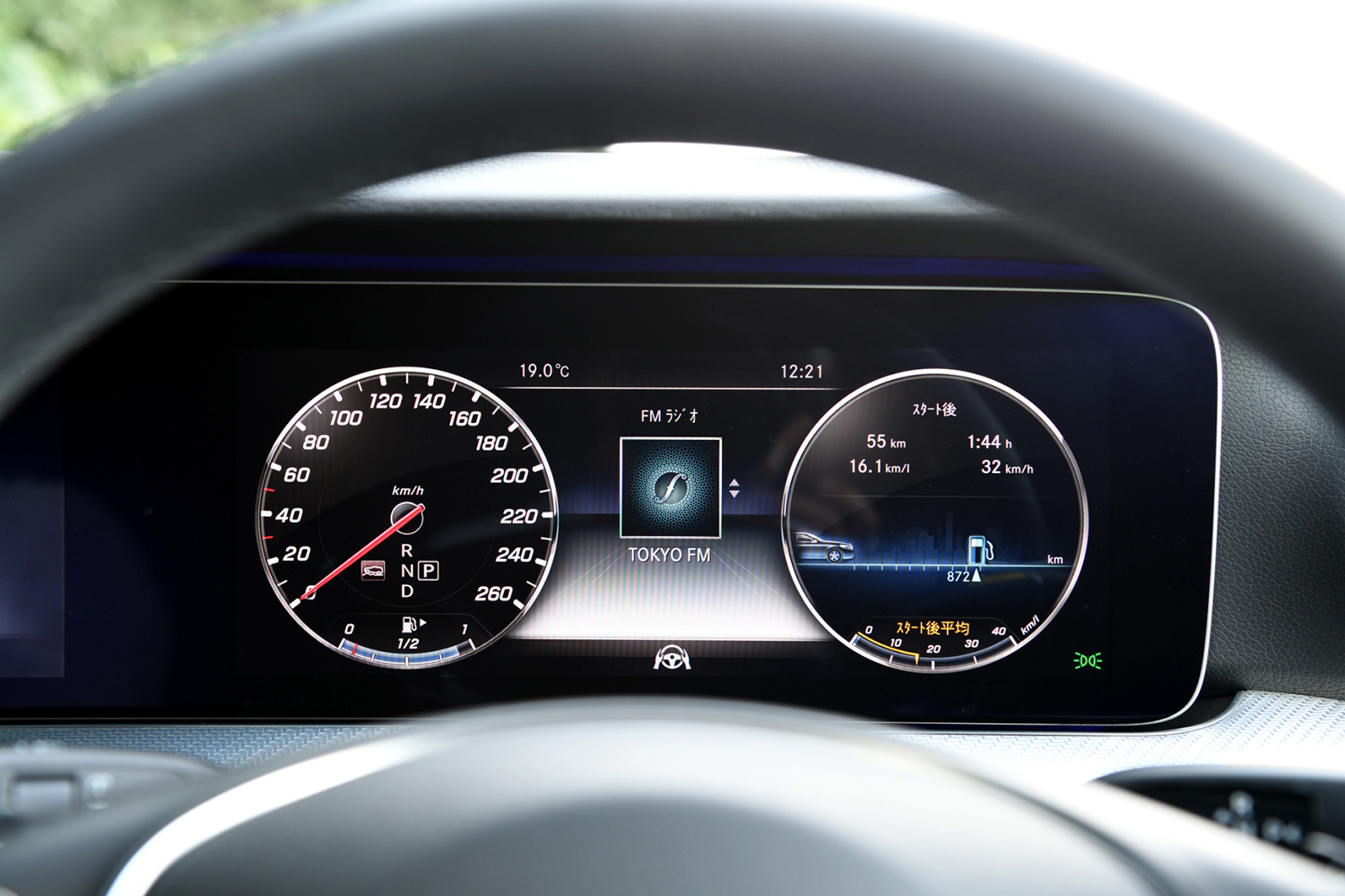 こうした数字だけを追えば、動力性能はさほど期待できないと思われかもしれませんが、ご安心を。今回は市街地と高速道路というドライブルートでしたが、1600回転から2800回転で最大トルクを発生するエンジンと、的確な制御を見せる9速ATのサポートもあり、歯がゆい思いをすることはありません。さらに、変速時も「さすがはベンツ!」と納得させられるスムーズさですし、加速時もキャビン内の音圧が大きく変わることはなく、高速道路でのクルージングは快適のひと言に尽きます。ちなみに、法定速度内での巡航であれば、エンジン回転数は1500回転前後を行き来する程度。右足に力を込めれば、スッと適切なギヤへとダウンして加速体勢に移りますが、その際の反応もEクラスの名に恥じない、極めて紳士的なフィーリングでした。