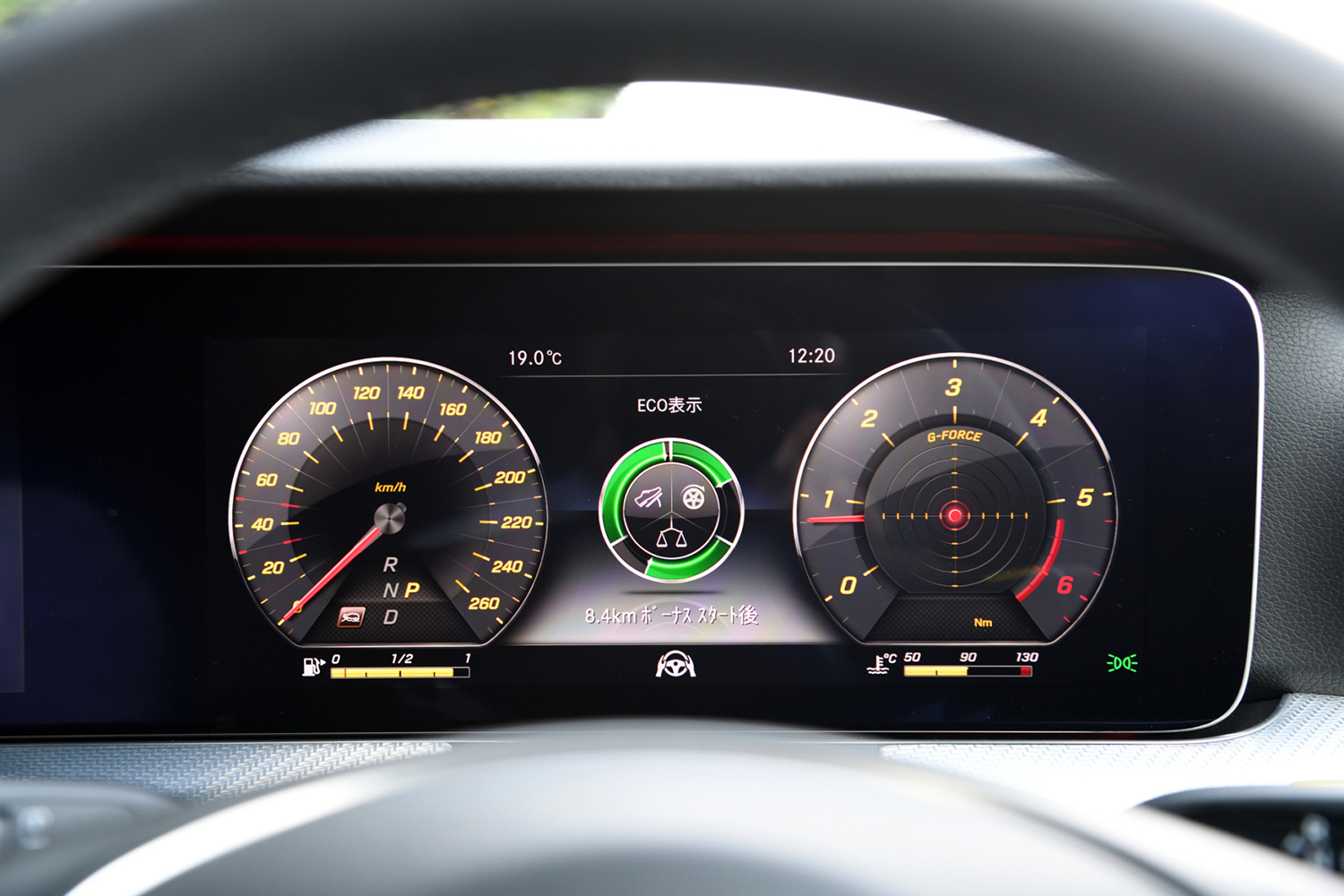 ちなみに、メーターパネルやディスプレイは、速度やエンジン回転数のほか、ドライビングに必要な各種情報の表示が可能なほか、表示モードも「スポーティ」、「クラシック」、「プログレッシブ」から選択可能となっています。こうした機能も「時代は変わった…」と感じる部分ですが、見やすさや扱いやすさはしっかり考えられており、ただの演出に終わっていない点は、ベンツらしいこだわりを感じます。