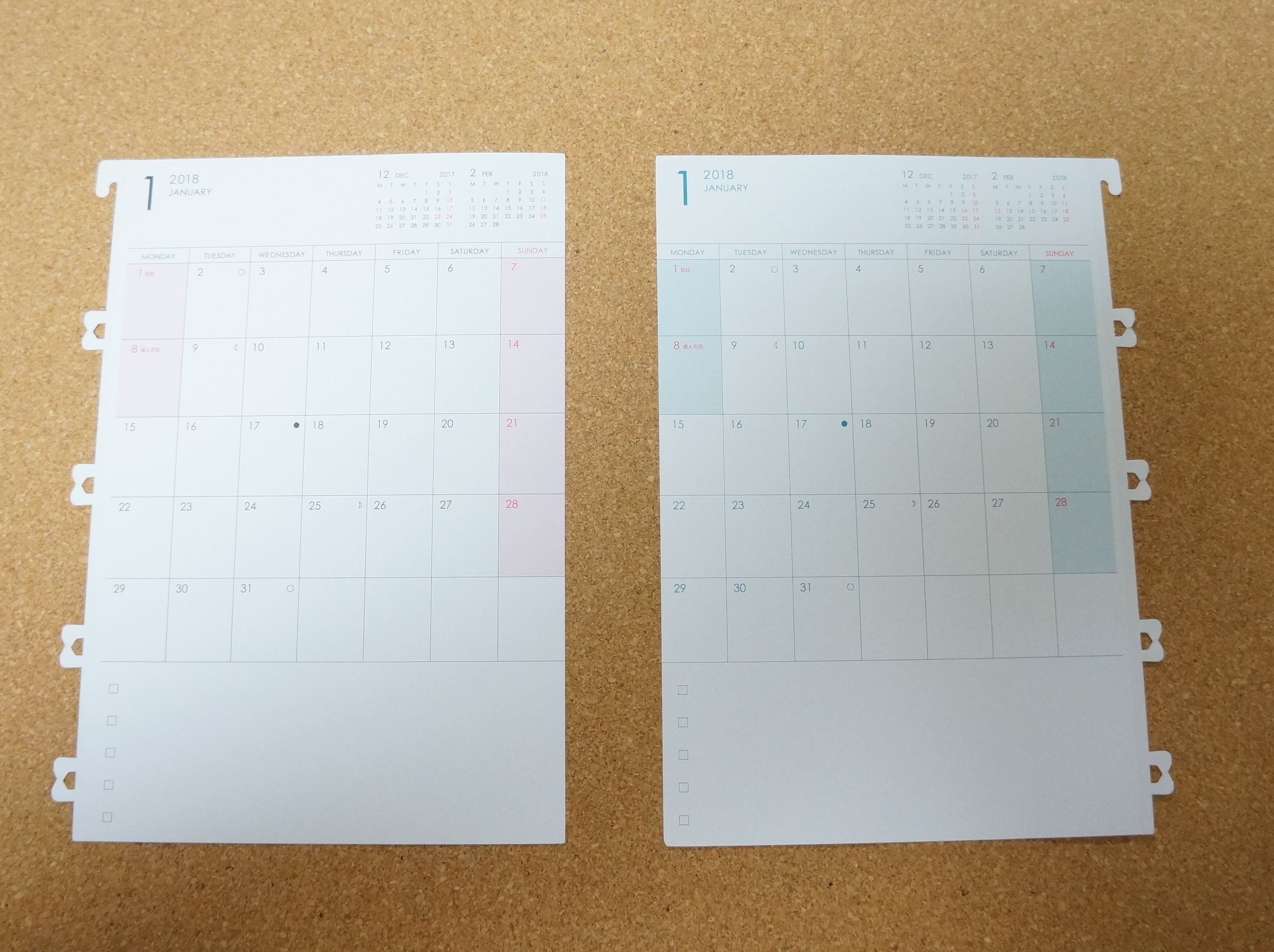 ▲同じ月のカレンダーの表面(左)と裏面(右)