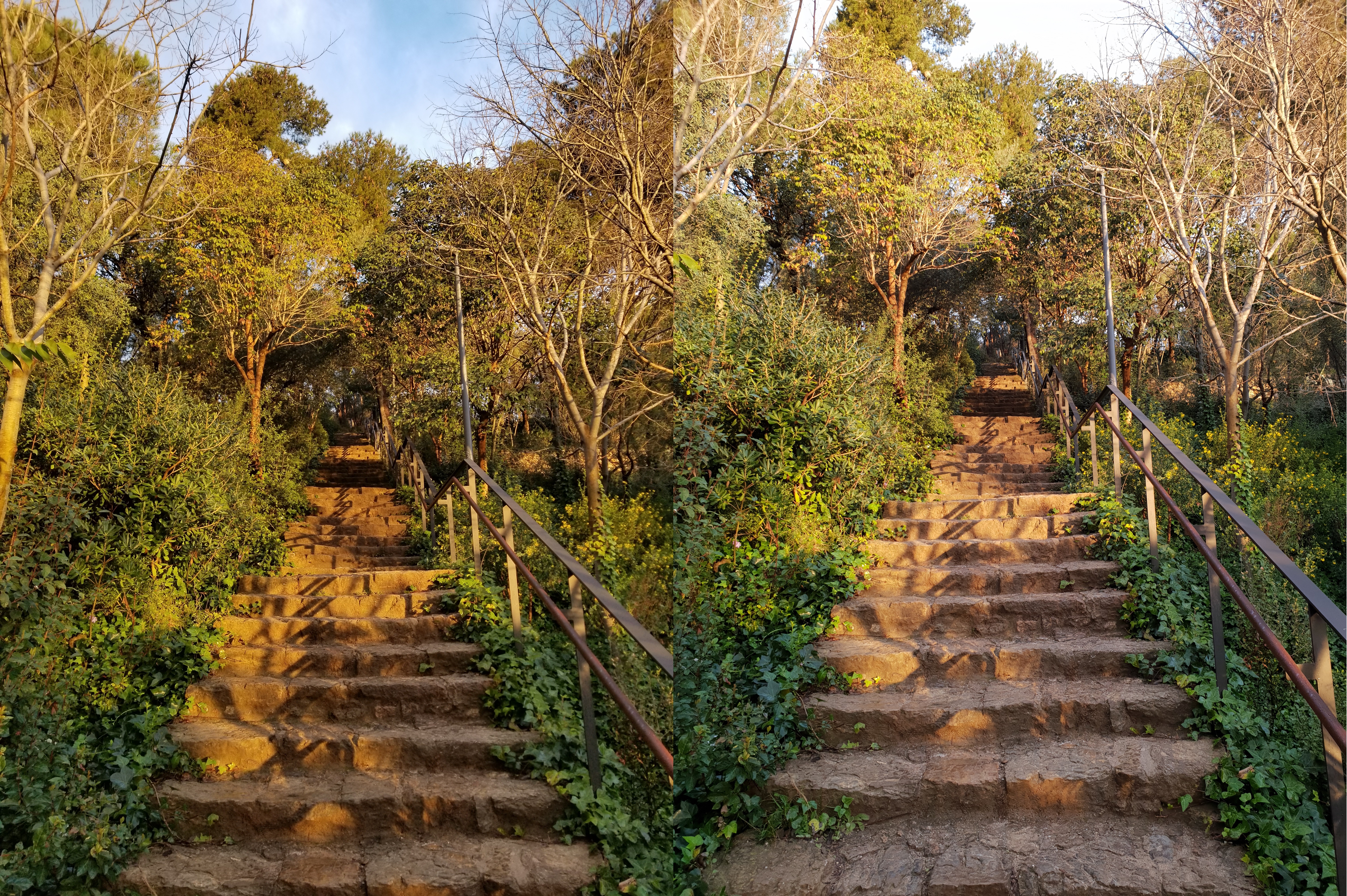 ▲朝焼けに染まる階段を撮影。こちらもS9+の方が、階段の表面などがより明るく写り、質感がよりリアルに伝わる。一方、上部の樹木の先端や、空の一部は明るすぎるようにも感じた。この場合はF1.5で撮影されていたのかもしれない
