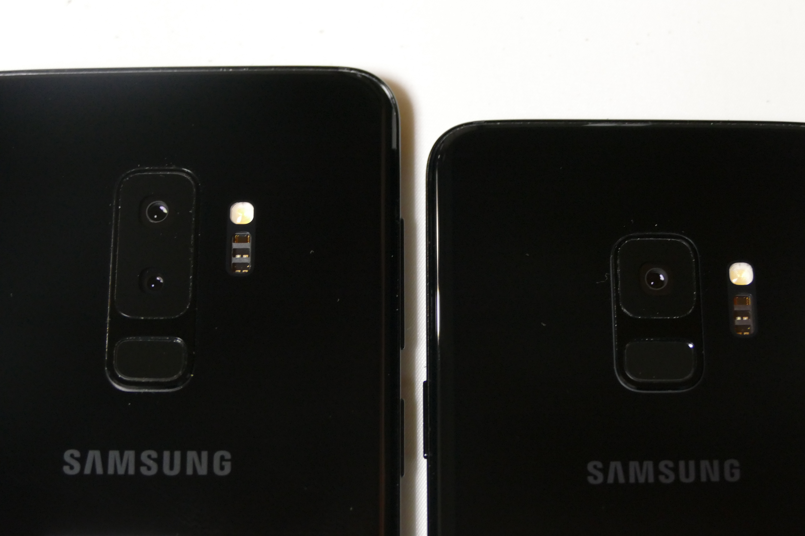 ▲S9+は1200万画素/F値1.5(or2.4)のメインカメラと1200万画素/F値2.4のサブカメラを、S9は1200万画素/F値1.5(or2.4)のメインカメラを搭載。指紋センサーの位置は、カメラに指がかからないよう改善された