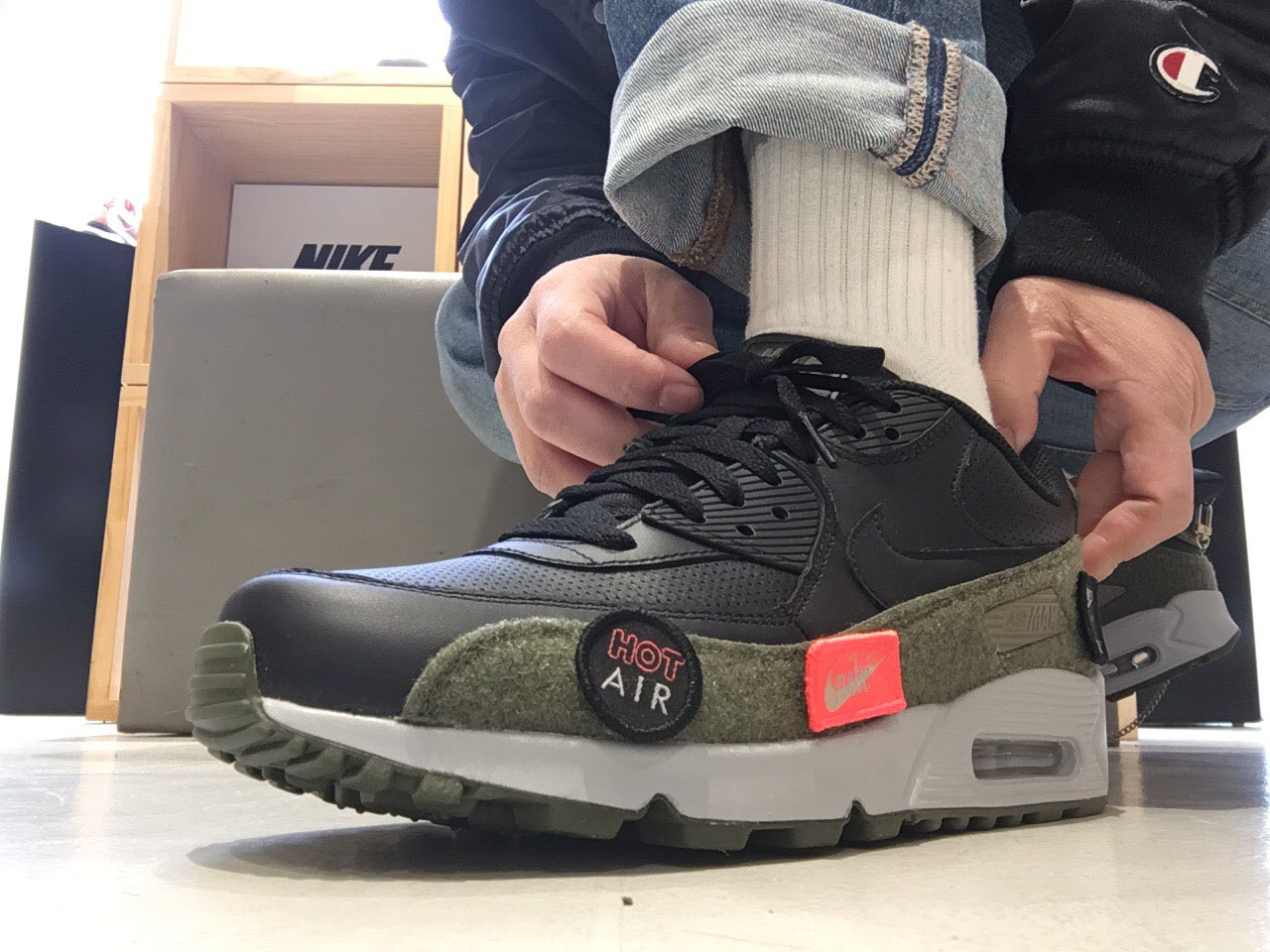 エア マックス 90は大人のスニーカーとして定番でしたが、オリーブ×ブラックでよりワイルドな味付けがカッコいい! さらにワッペンでカスタムまでできちゃうなんて、ワタクシの心を鷲掴みです!