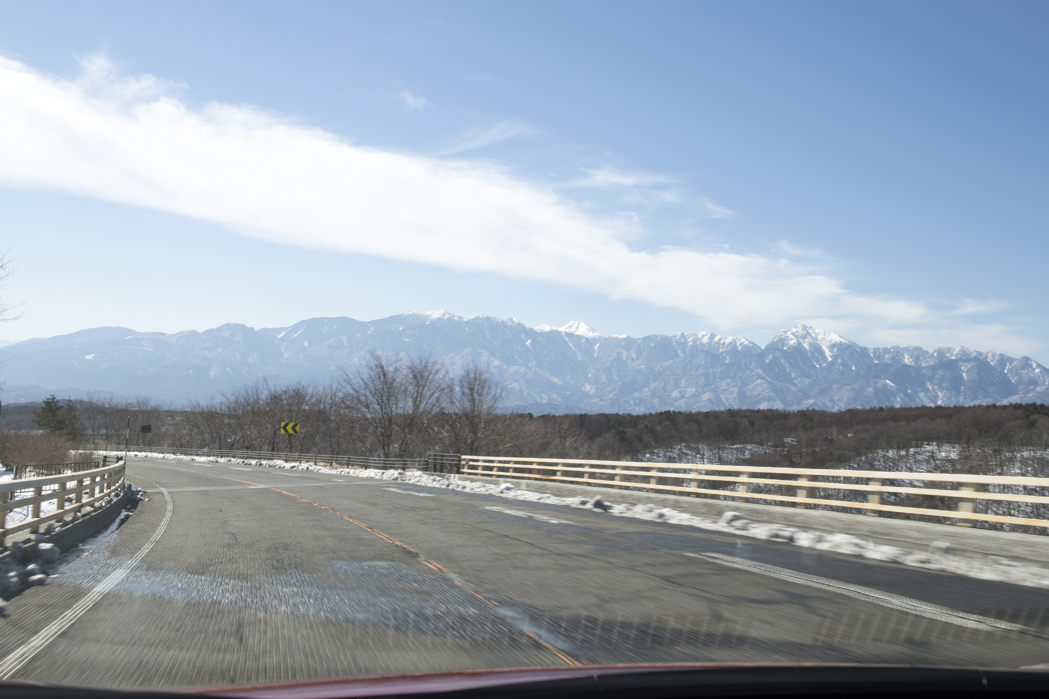 さて、2日目最初の目的地は、北杜市にある「サントリー天然水 南アルプス白州工場」。軽井沢から現地までは、高速道路とアップダウンのきつい一般道を走ります。電池残量が心配になるルートでしたが、残り残量38%で、無事に目的地へと到着。よく晴れた日だったので、清里の辺りからは南アルプスや富士山を眺めることができ、素晴らしい景色を堪能できました。