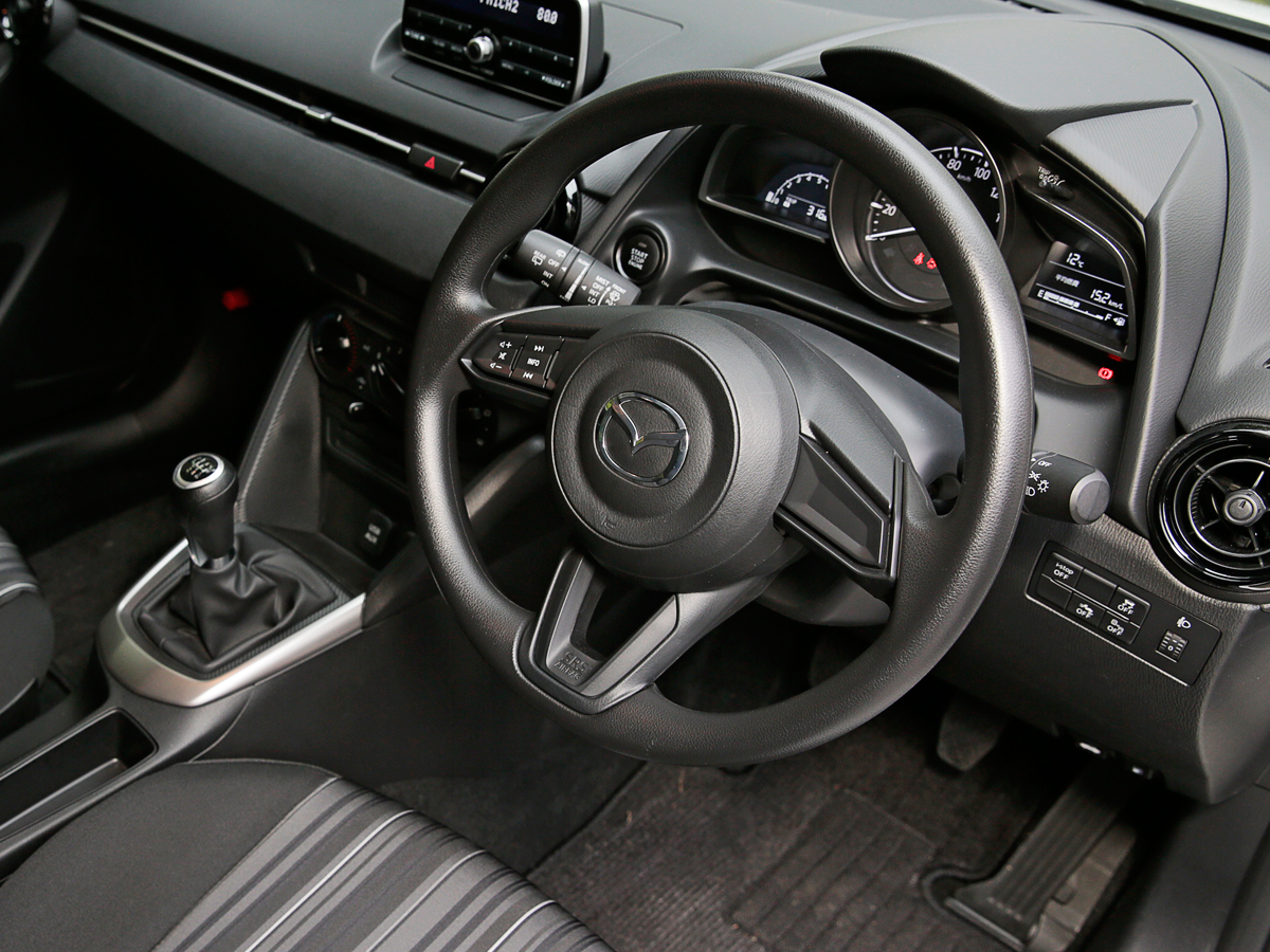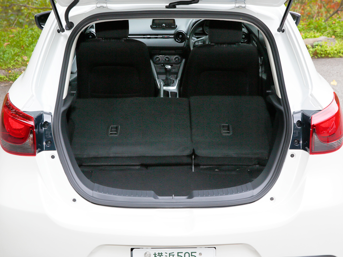 「ディーゼルエンジン+MT」という、国内では珍しい車種もラインナップするマツダですが、今回の試乗車は、1.5リッター自然吸気エンジン(116馬力/15.1kg-m)に6MTを組み合わせた「15MB」。M=モータースポーツ、B=ベースモデル、つまり“モータースポーツを気軽に楽しむためのベースモデル”という位置づけです。ちなみに今回の個体は、153万3600円の車両本体価格に、6万4800円のユーティリティパッケージ(ダークティンテッドガラス、分割可倒式リアシート、16インチアルミなど)を追加装備した仕様で、日常の使い勝手にも配慮した1台になっていました。