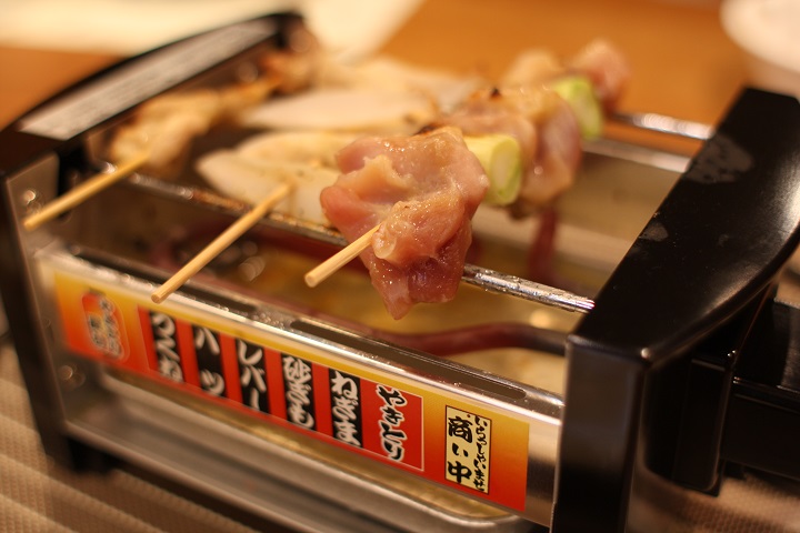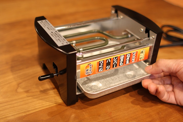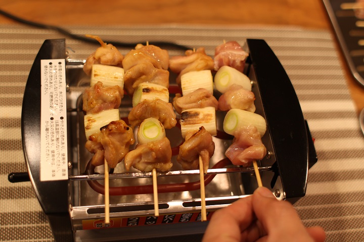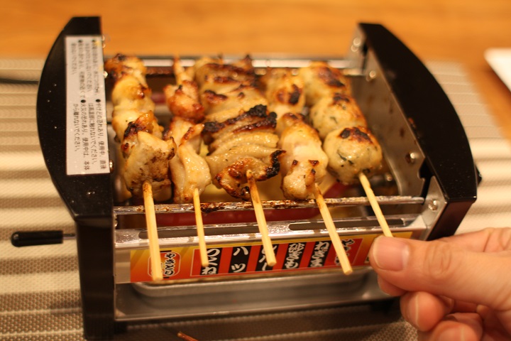 串に通すのが難しかった軟骨は、焼き方にもちょっとしたコツが必要。焼き加減調整用レバーでサイドバーを上にして串を置いても目を離したすきにヒーターに接触していることがあり、油断禁物!なのです。