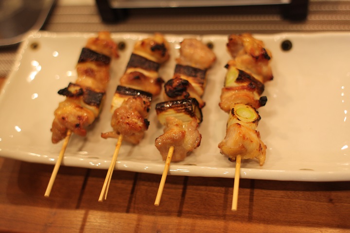 「やきとり屋台」の商品パッケージには、串が5本並んで写っていましたが、実際に並べてみると4本で丁度良い感じでした。串の具材は一口サイズにしたつもりでしたが、ちょっと大きかったのかもしれません。