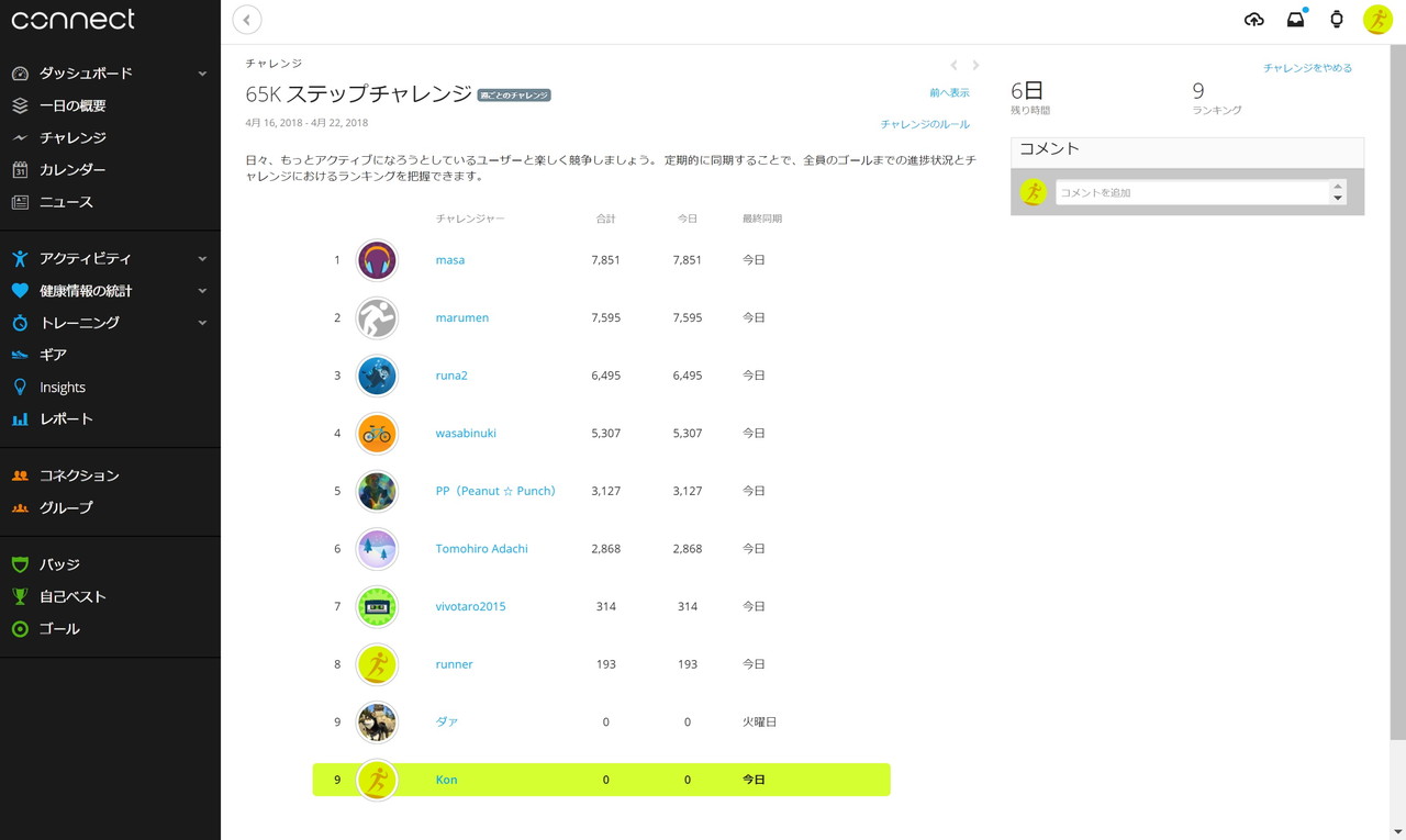 ▲これは歩いた歩数を競う「ステップチャレンジの画面。デフォルト設定の場合は自動的ににレースに参加することになり、カウントしたデータで順位が決められる