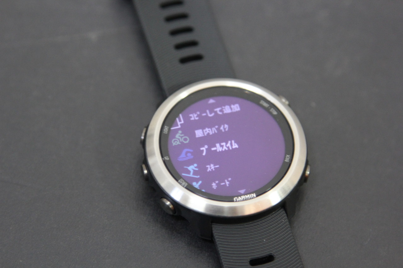 ちなみにForeAthlete 645 Musicには、ランニングのほかに、サイクリング、水泳(プール)、スキー、筋トレなど、それぞれに対応するアクティビティプログラムが内蔵されている。スポーツをする際にプログラムを選んで行えば、GPSのログ、心拍数を記録したり、それぞれのスポーツに対応したデータが表示される。