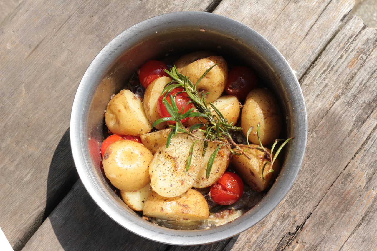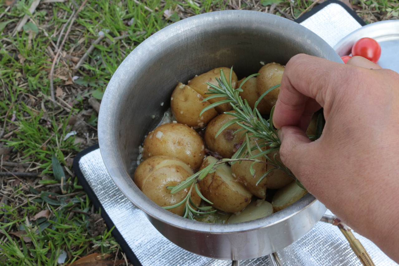 基本的にジャガイモは塩気の強い食材との相性が抜群で、アンチョビと組み合わせることが多いんですね。今回は、アンチョビを漬けておいたオイルを炒め油にしてみました。アンチョビの香りが強くなるので、ローズマリーを多めにからめて爽やかさをプラス。酒のつまみにちょうどいい一皿になりますよ。