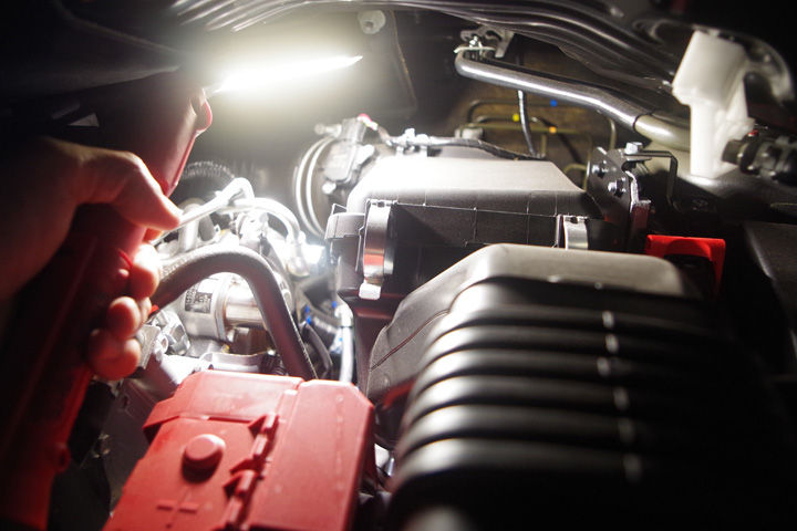 底面部分は金属製でやや重量感があり、立てた時に安定します。また、強力なマグネットが内蔵されています。ボンネットの裏側に貼り付けるのはもちろん、作業台の上に置いて、簡易的なデスクライトのようにして使えます。そして、搭載されるLEDの配置についても工夫が、施されています。