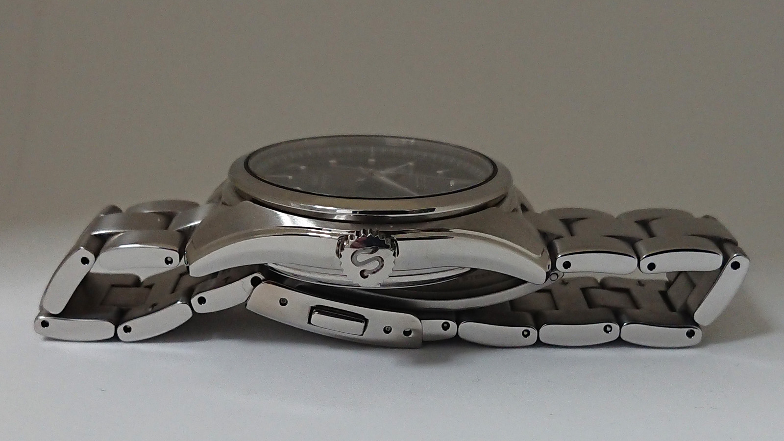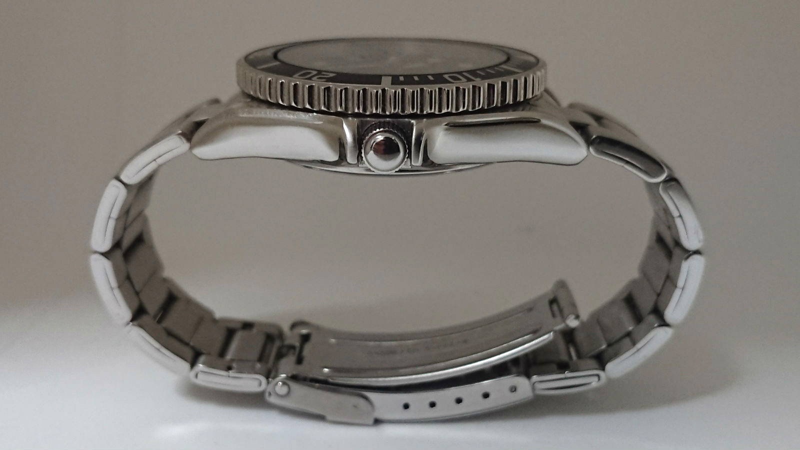 風防以外の部分の状態は比較的良好で、ブレスレット部分にはわずかに小キズも入っていたのですが、軽く磨いたら見違えるようにキレイになってくれました。