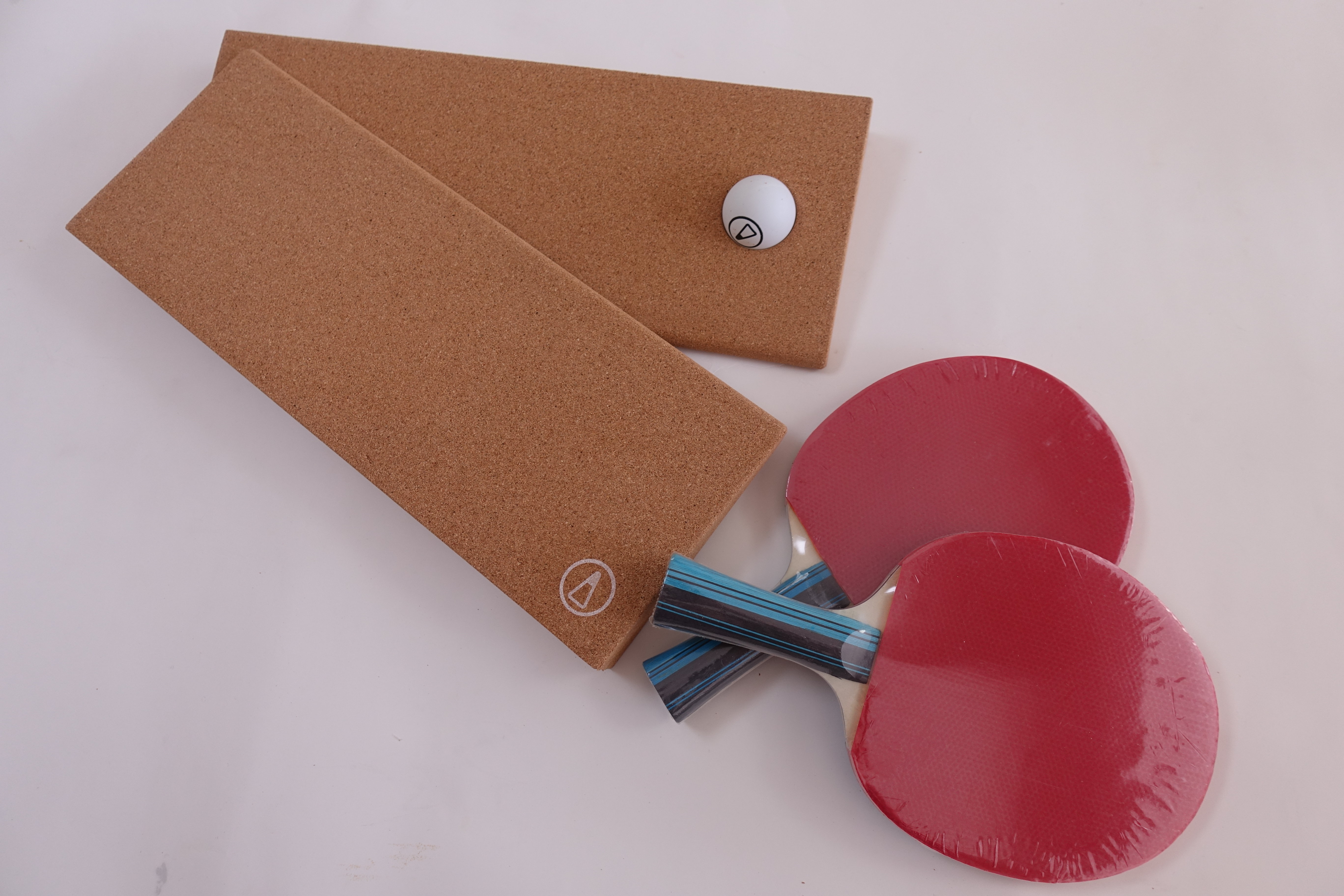 卓球台のネット代わりになっていたコルク板は、2枚を重ねることで鍋敷きになるため、夕食に鍋をする、コーヒーのためにポットを置いておく、そんな場面で役立ちます。