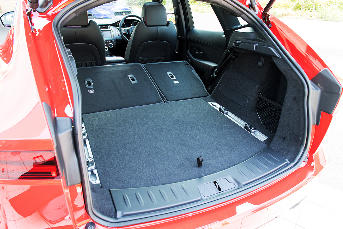 プラットフォームの基本設計はレンジローバー イヴォークと共有、つまり、横置きエンジン+4WDのレイアウトだ。ジャガーのサルーン系モデルのように、ドライブしていて“癒される”とか“エレガント”といった方向性の味つけではなく、ステアリングの操作フィールはクイックで軽快。フットワークにおいても、過度なロールを抑え込んでいる。とはいえ、闇雲に乗り心地がハードであったり、尖ったショックを感じさせたりすることはない。硬いけれど、路面と車体との間に分厚いフェルトがあるかのような印象で、路面の段差などを超えた時も、不快な振動を感じることはない。