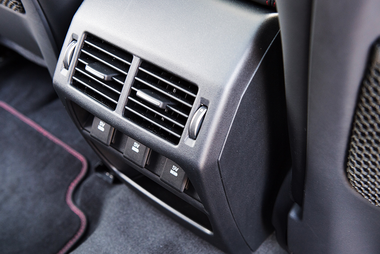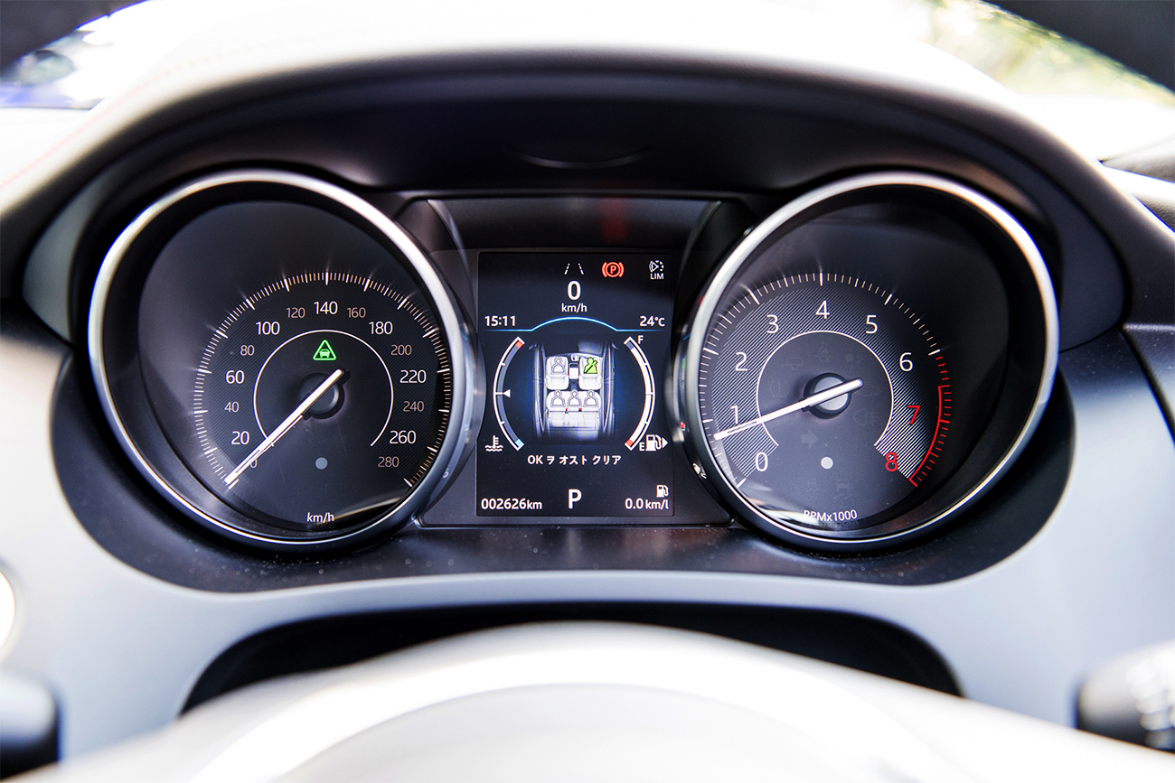 インテリアにおいても、同様の手法が貫かれる。メーターやエアコンの操作パネルはもちろん、メーターナセルからセンターコンソールへとつながる部分に設けられた助手席用アシストグリップの意匠も、F-TYPEと同じテイストにまとめられている。そもそもSUVは、左右対称のダッシュボードデザインを採用するクルマが多いが、これほどハッキリと「ドライバーのスペースはココまで!」と宣言したクルマも珍しい。まさに、F-TYPEがその生い立ちに大きく影響していることの証であり、SUVにスポーツカーの要素をいかに色濃く盛り込むかが、E-PACEの開発におけるカギとなっている。