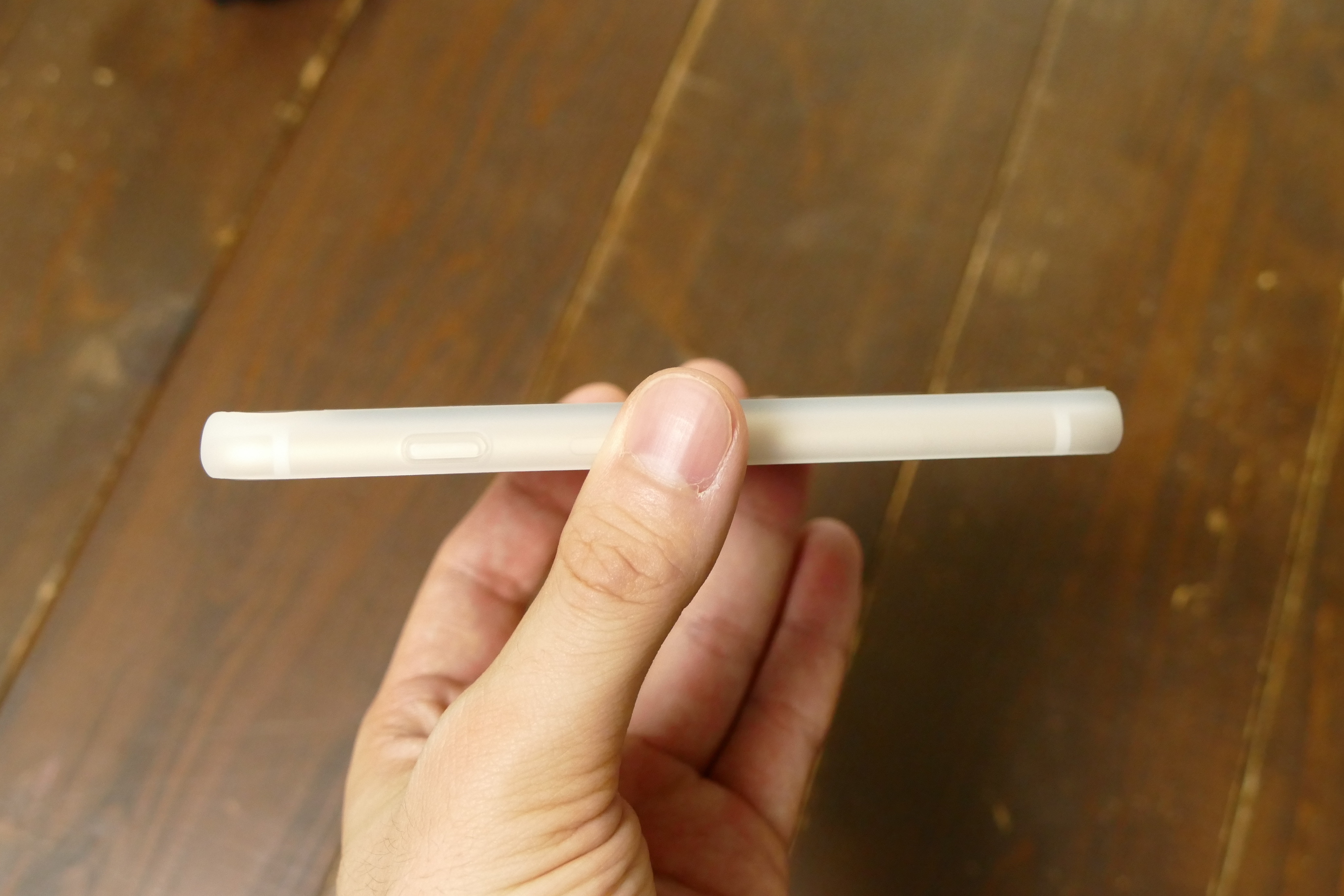 早速装着してみました。ケースは側面がシリコン製っぽくて柔らかい。背面は、ワイヤレス充電のレシーバーが入っているため、少し厚みがあります。