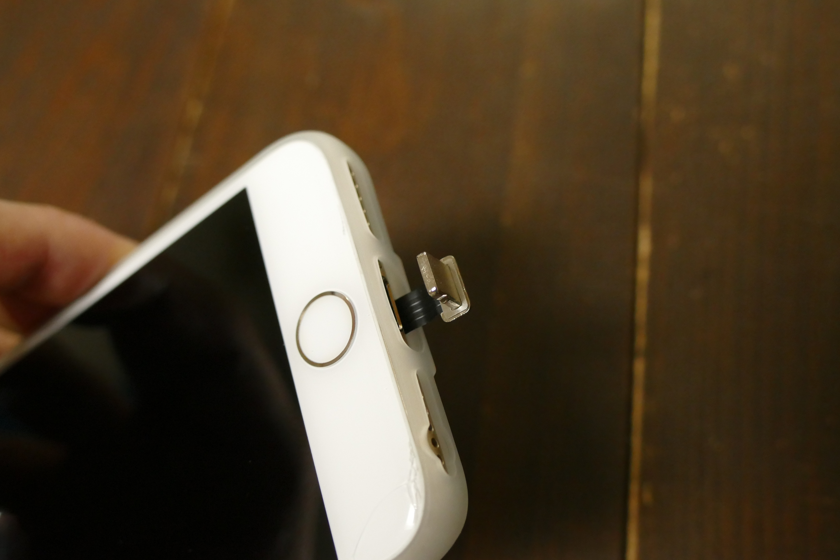 ▲Lightningコネクタ部分はこうなります。黒い配線カバーが少し気になるかも
