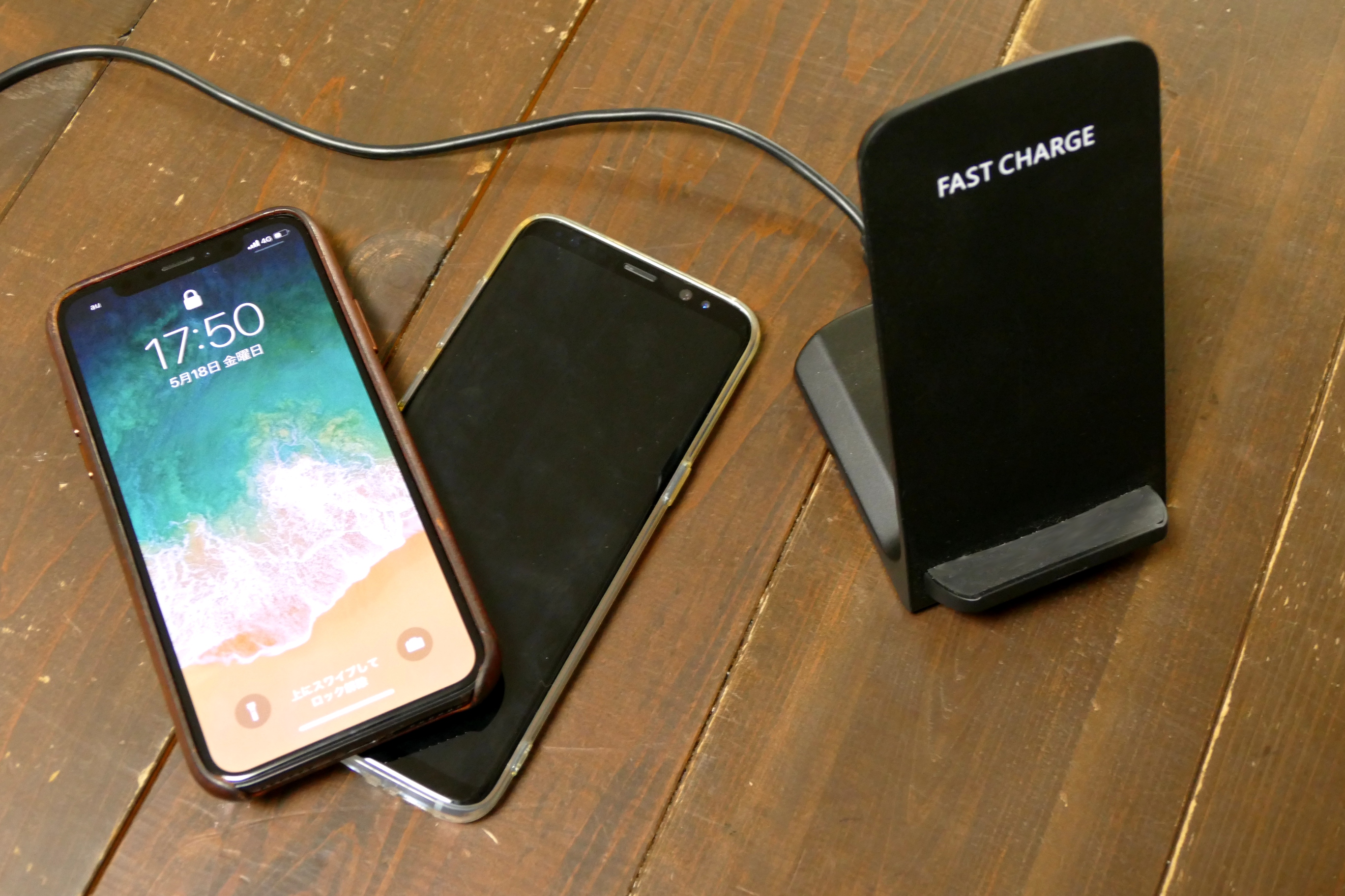 この状態で充電台に設置すると、ワイヤレスで給電がスタートします。精確な充電スピードは測定していませんが、筆者が普段使っているiPhone Xと比べると、少し遅い印象でした。