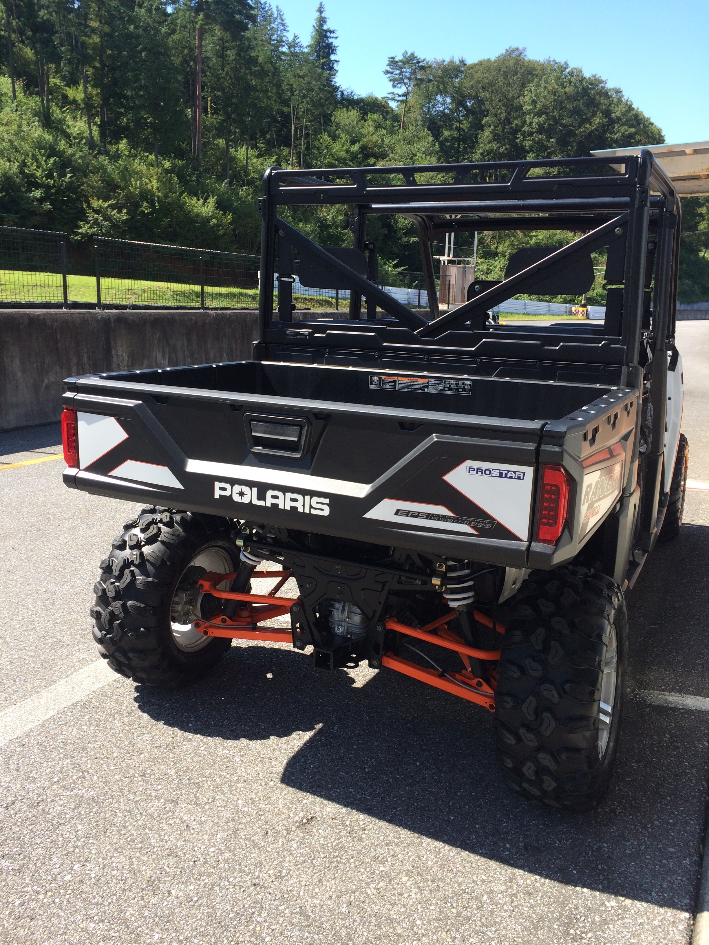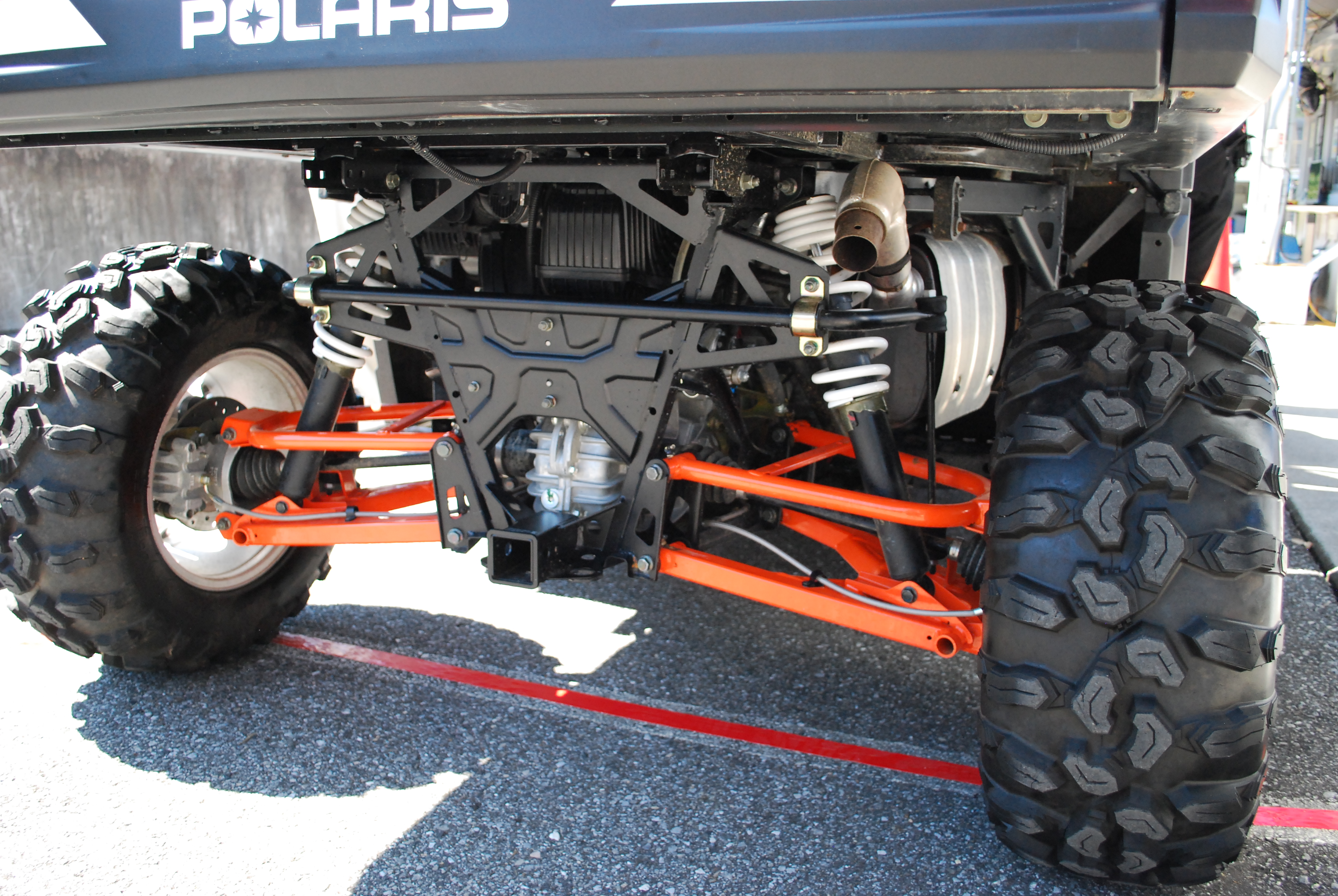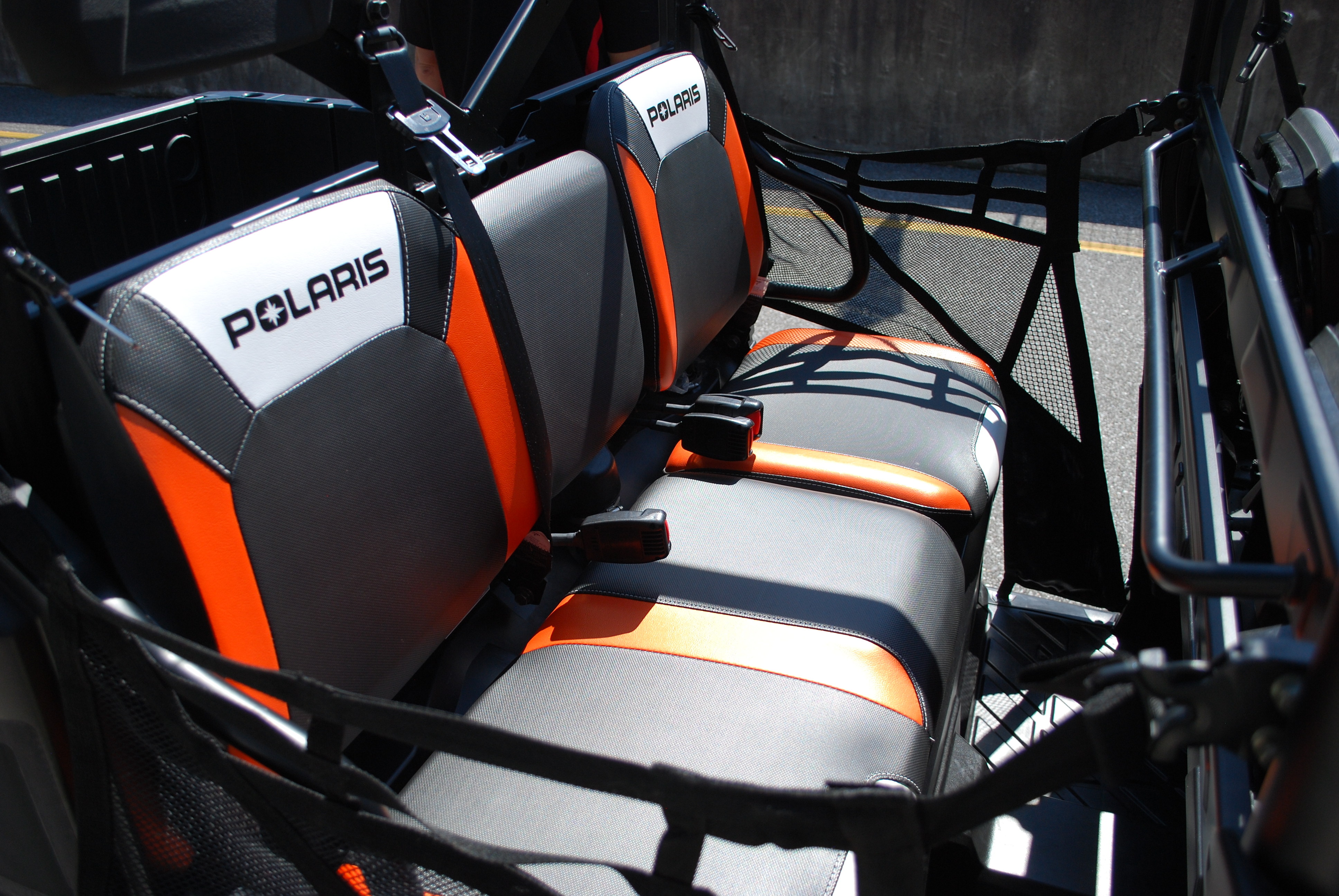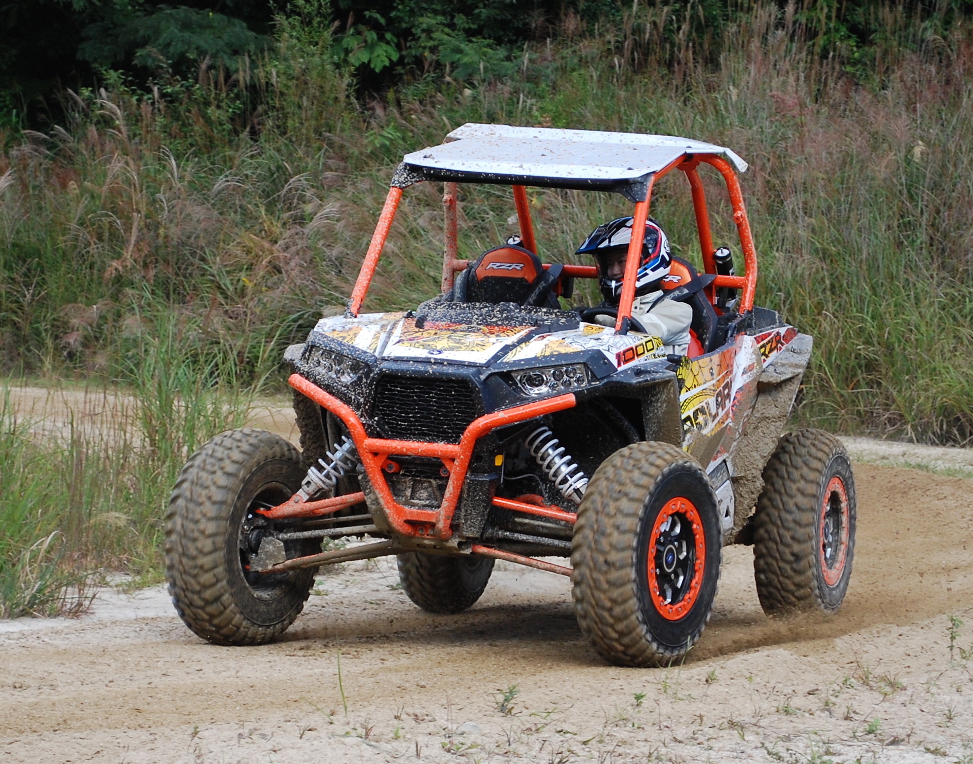 ポラリス社のORVはすべて窓のない完全オープンエア(標準)。このRZRシリーズに至っては、エンジンやタイヤなどの主要パーツに強固なフレームが乗っていて、申し訳程度にボンネットやドアが付いている……そう理解していただいて良いかと思います。レンジャーとかサバゲーとかそういう物騒な単語が脳裏に浮かんで消えていきます。