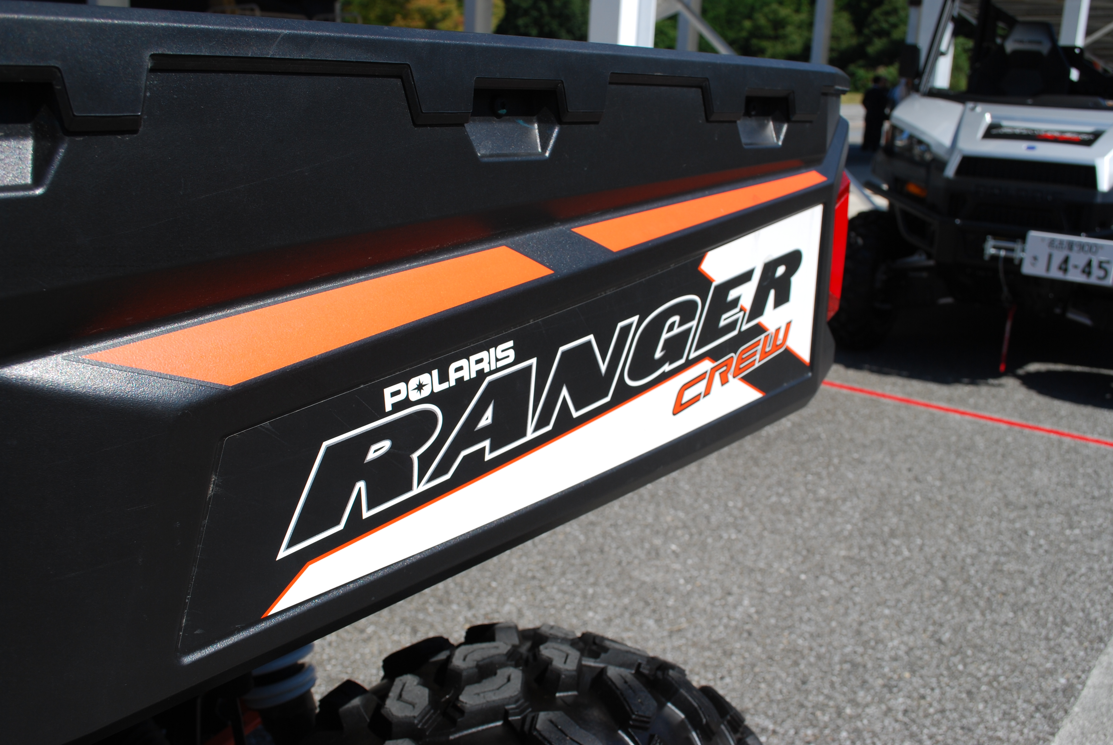 早速、実車とご対面。ひたすら無骨で固そうなイメージです。そういえば、試乗前のカンファレンスでは、RANGERシリーズについて「トレイル、農場、狩猟など、さまざまな場面での過酷な作業にも耐える頑丈な作り」と解説していました。何人掛かりでよっこいしょと横倒しにしても全然へこまなそうです。高倉健さんのような頼りがいを感じます。