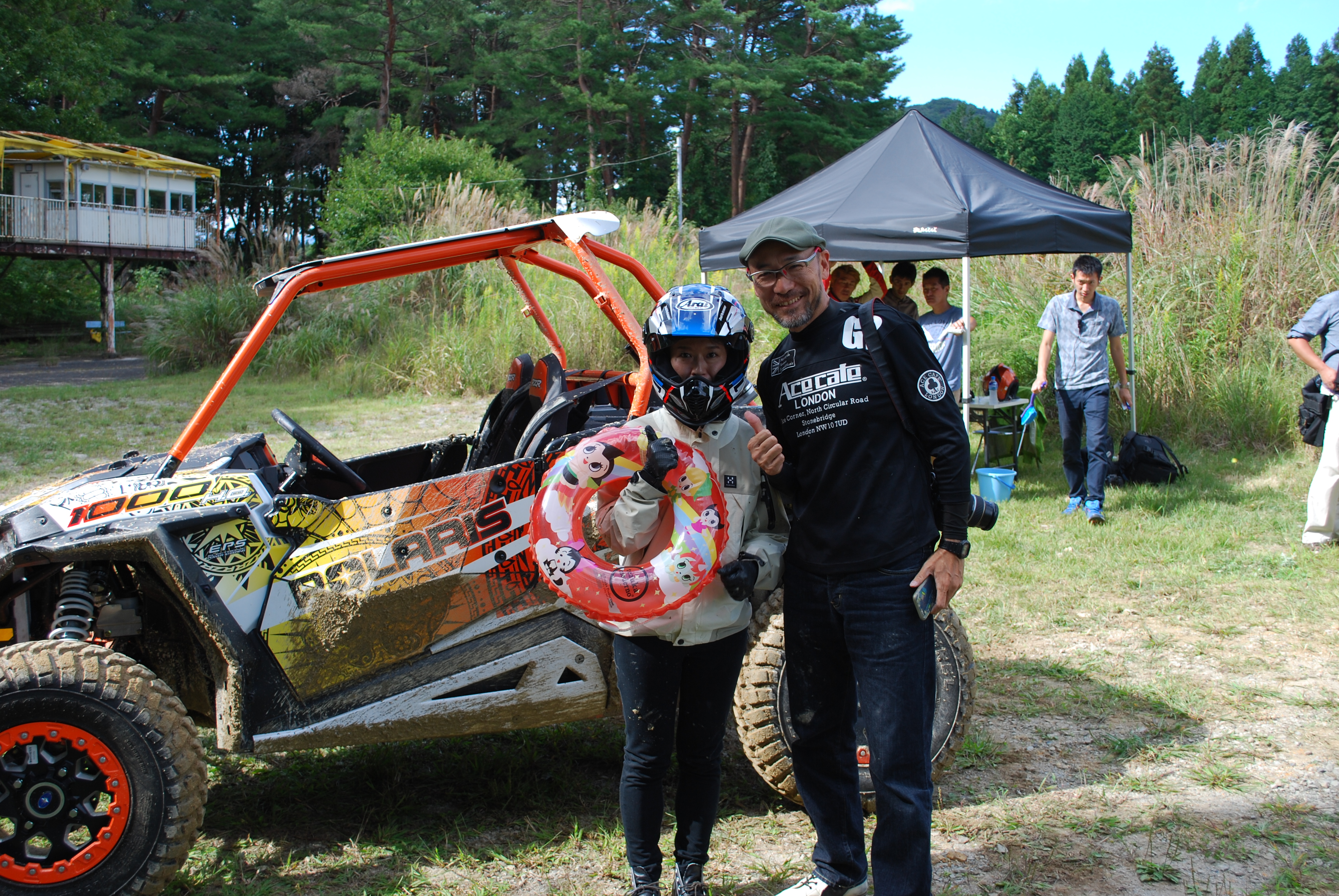 勇んでコースへ。平坦な周回コースですが、わだちや泥溜まりがあって決してラクなコースではありません。がしかし、四駆モードを選んだおかげでコーナーでもしっかりグリップし、振られることもなくスムーズ。二駆モードに切り替えた時は、少しリアが滑ってヒヤッとすることも(運転が下手という説もあり)。