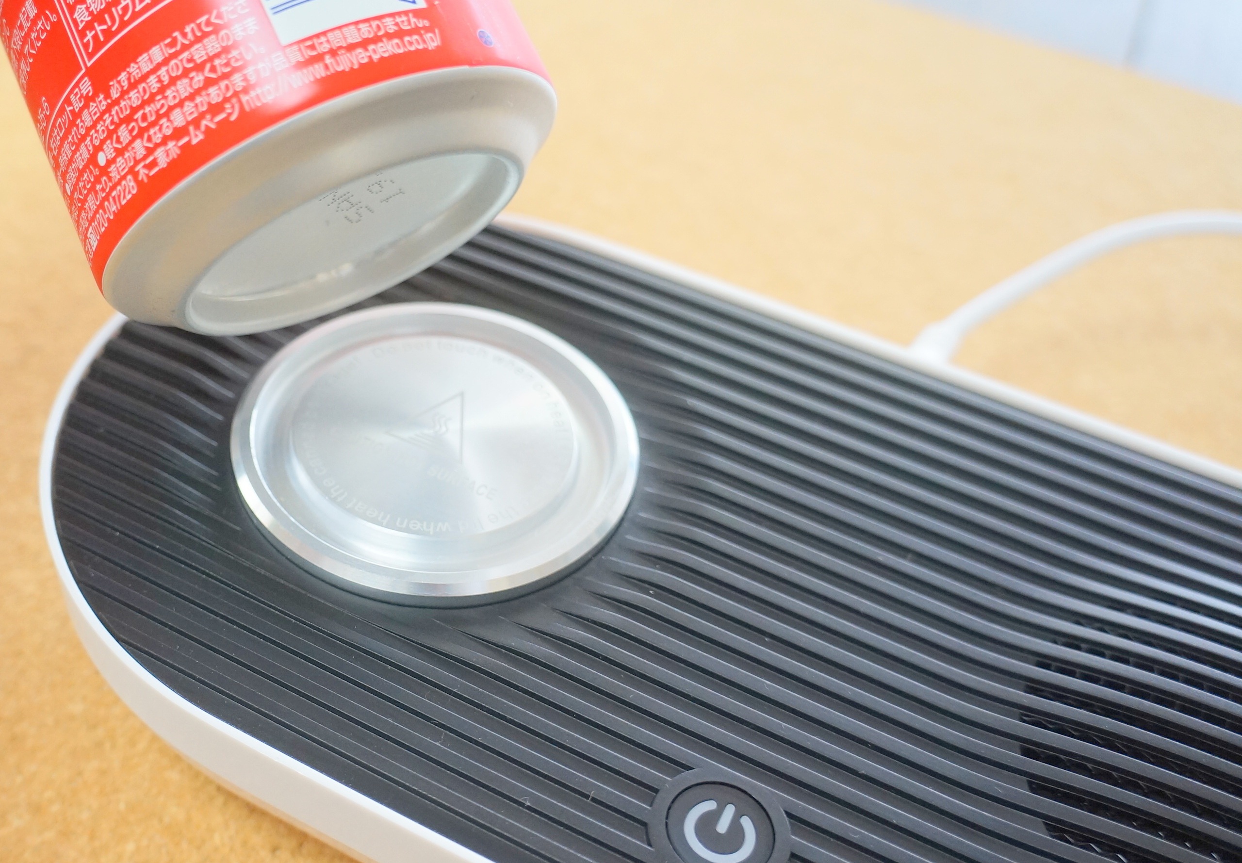 しかし、缶飲料(アルミ缶)をプレートに置いた場合と常温保存した場合の温度変化の差を見てみると、専用のカップを使ったときのように、大きな差を感じることができませんでした。実際に中身を飲んで見ても、片方が片方より特別冷たい、ということもありませんでした。