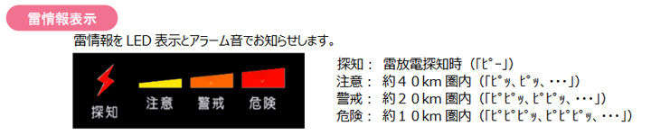 雷情報表示部分は、雷の強さや距離に応じて3段階の警告を発します。
