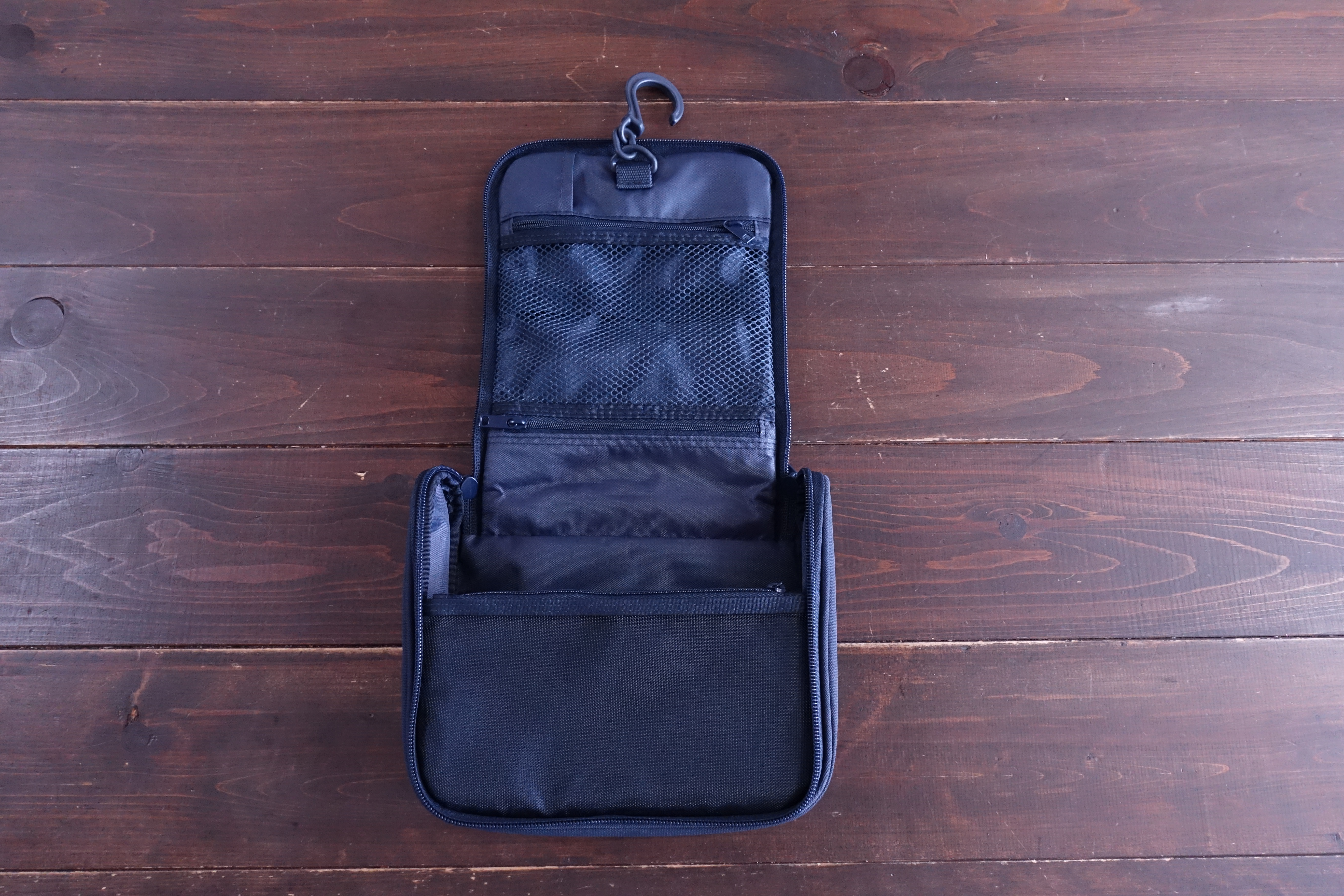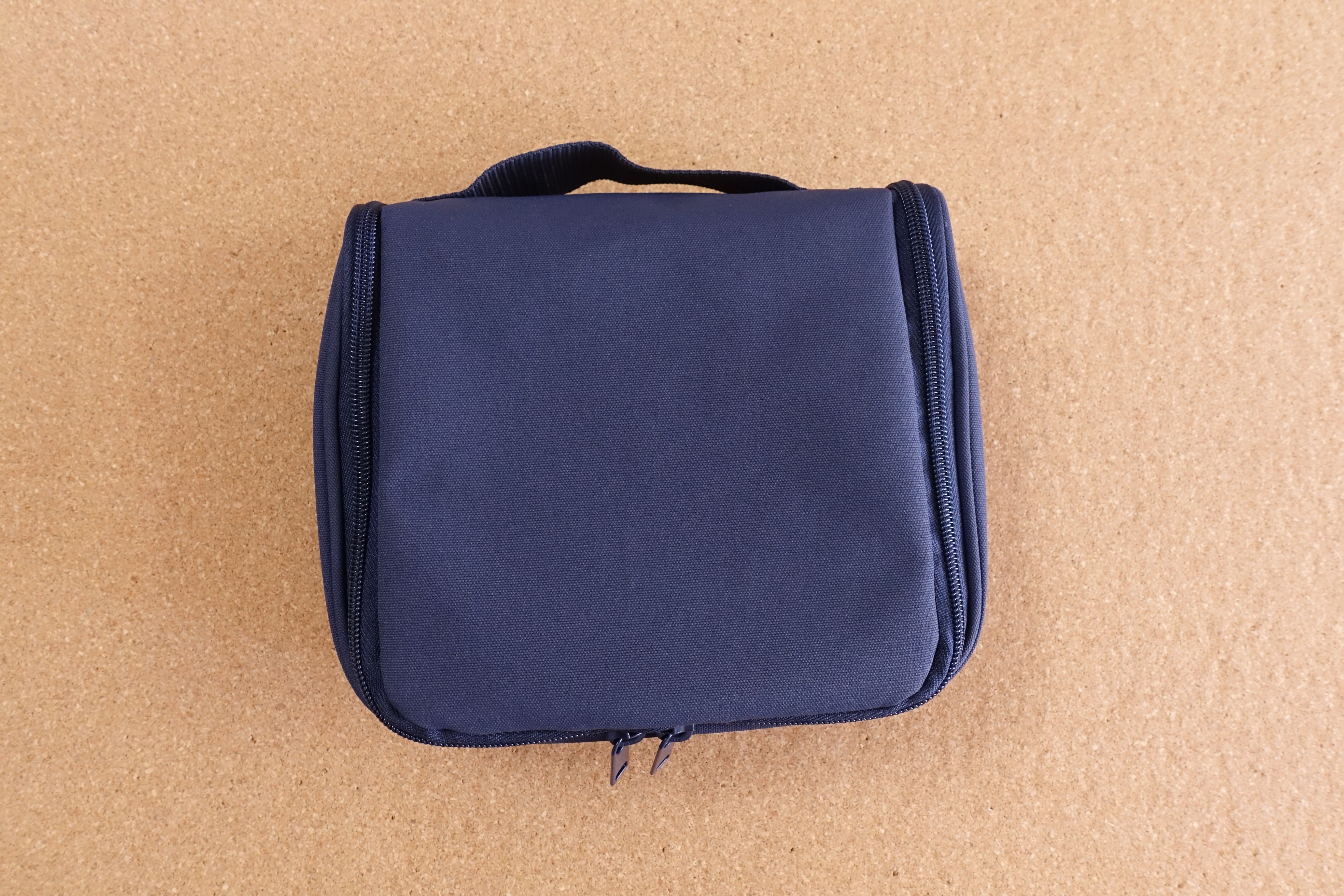 収納力バツグンの「ポリエステル吊して使える洗面用具ケース」は、1590円(税込)。ネイビー、グレー、ブラックの3色展開です。ゴムバンドを活用して、充電コードなどを収納するガジェットポーチとして利用するなど、いろいろ工夫して使ってみるのもよさそうです。
