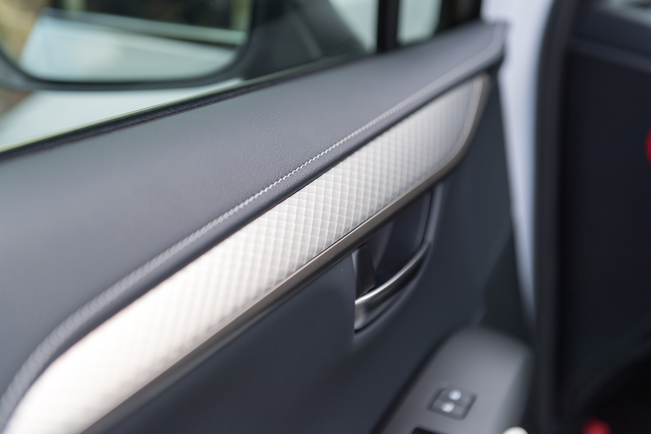 インテリアでは、ナビディスプレイを10.3インチに拡大し、タッチパッドの大型化など視認性や操作性を向上。さらに“リッチクリーム”と呼ばれるホワイト系の内装色のほか、新色が採用され、本アルミのオーナメントパネルが追加されるなど、質感も向上しています。