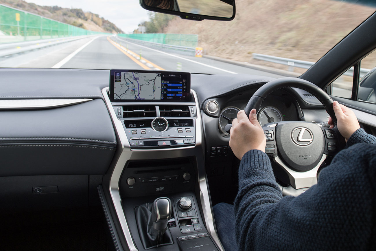 ドライブに連れ出した「NX300“Fスポーツ”」は、ホワイトのボディカラーとメッシュパターンのスピンドルグリルのコントラストも力強く、SUVらしいたくましさを感じます。