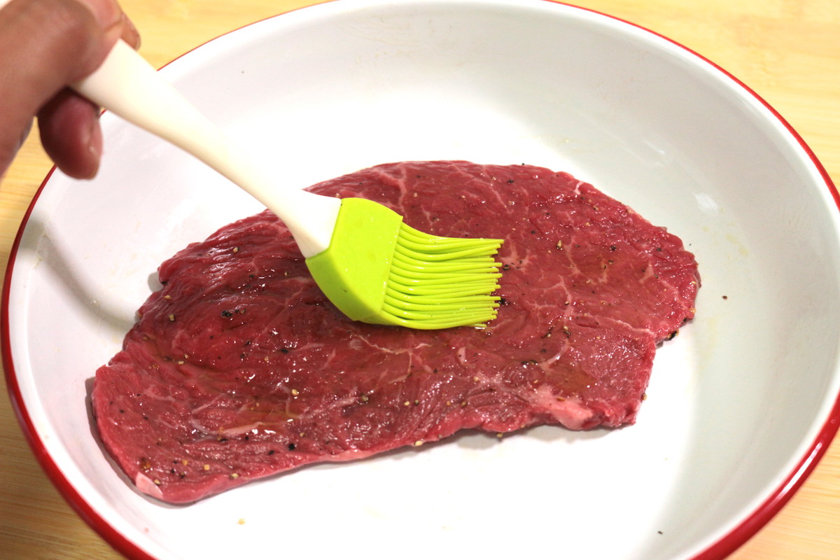 脂分が少ない赤身肉は、オリーブオイルを表面に薄く塗ります。オイルによって高温になり、香ばしく焼けるんです。