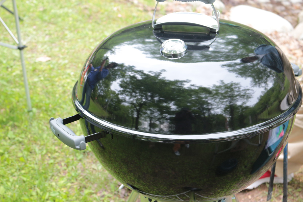 炭に火をつけたら、バーベキューコンロの片側に寄せておきます。バーベキューコンロは深めで、フタ付きがベストです。
