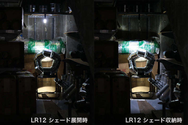 兄弟機「LA10」との違いは、シェードの先端が抜かれていることです。これにより、前方に照射することができるようになりました。