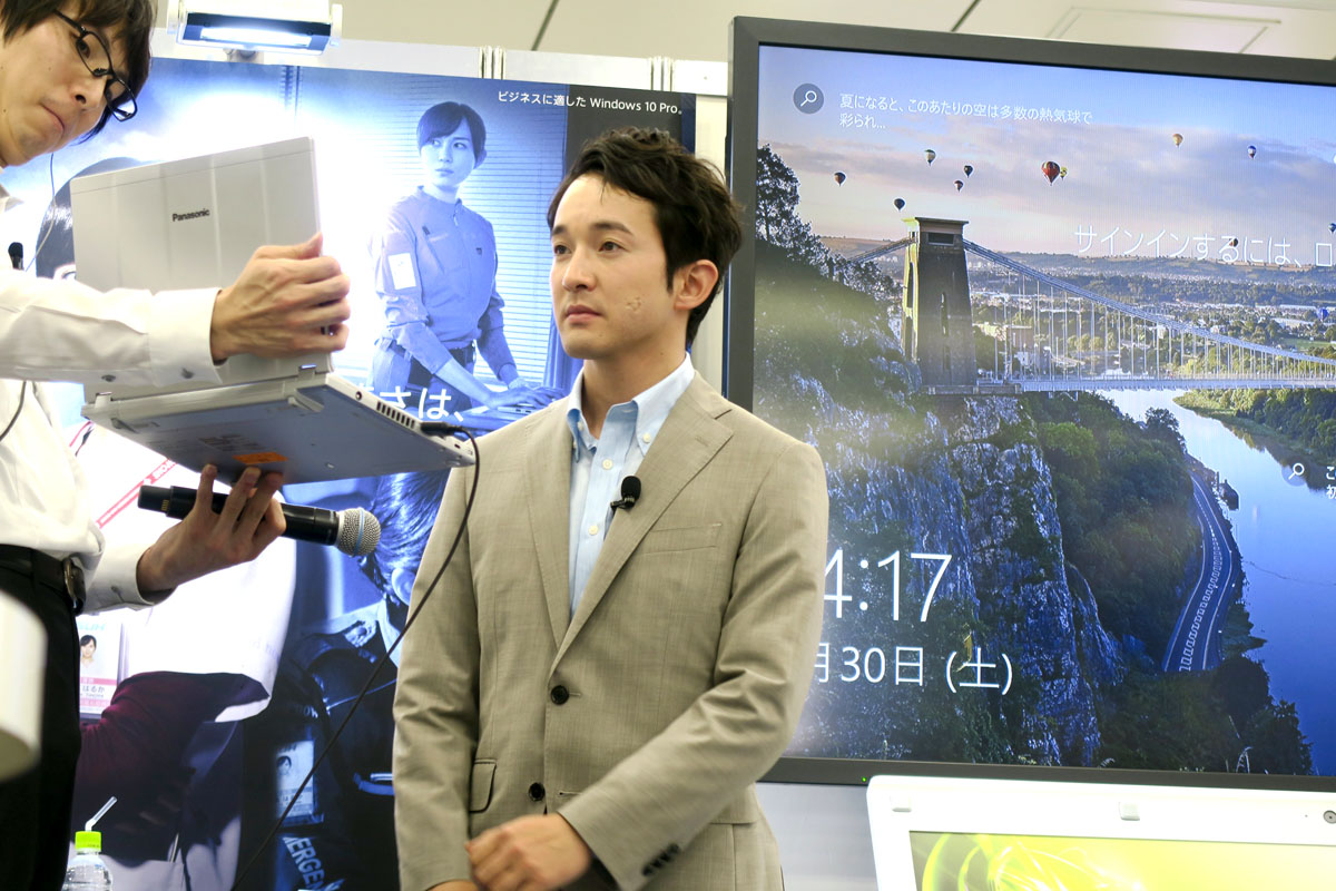 6月30日に開催された東京駅八重洲中央口特設コーナーでのタッチ&トライ イベントには、レッツノートの宣伝キャラクターを務める女優の比嘉愛未さんが登場。さらに、「劇場版コード・ブルー -ドクターヘリ緊急救命-」と「レッツノート」とのコラボCMで共演した浅利陽介さんもゲストとして登壇した。