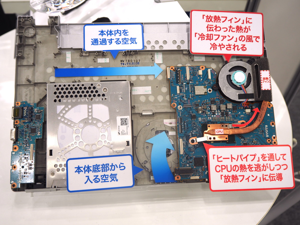 ▲CPUの熱を、ヒートパイプを通して放熱フィンに伝導。冷却ファンの風で冷やしていく設計に。CPUのポテンシャルを最大限に引き出せる