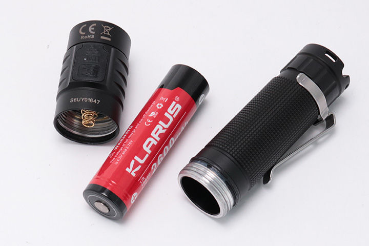 構造を見る限り、一般的な18650電池であれば装てん可能なようで、充電もできました。ただ、メーカーや機種によって使えない場合があります。さすがに全ての取り合わせをチェックすることは困難なので、あくまでも懐中電灯としての点灯機能に絞ってご紹介します。とはいえ、ST10はほとんどの18650を許容するタイプかと思います。