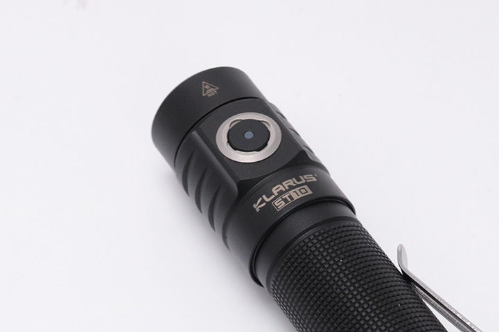 操作はサイドスイッチのみで行います。クリックで点灯、そのままクリックを繰り返すと明るさがLOW→MED→HIGH→TURBOと遷移します。モードメモリが機能するタイプで、前回消灯時の明るさで再点灯できます。ダブルクリックでストロボ、さらにダブルクリックでSOS。SOSがMEDと同じ100ルーメンなのは、KLARUSの特徴ですね。1100ルーメンで短時間だけSOSを出せる仕様は、個人的にはそれほど価値を感じません。もっとも、そういう話になるとSOS信号自体にどれほどの意味があるか…という話になっていましますが。
