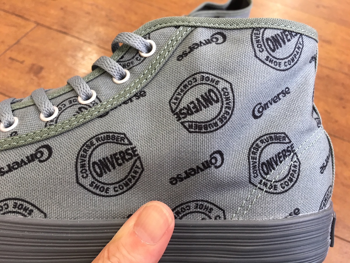 アッパーは水が浸みにくく汚れが付きにくい、撥水キャンバスを使用。さらに創業当時に使われていた“BIG C”ロゴが全面に配され、ワイルドな中にポップな雰囲気も醸し出しています。