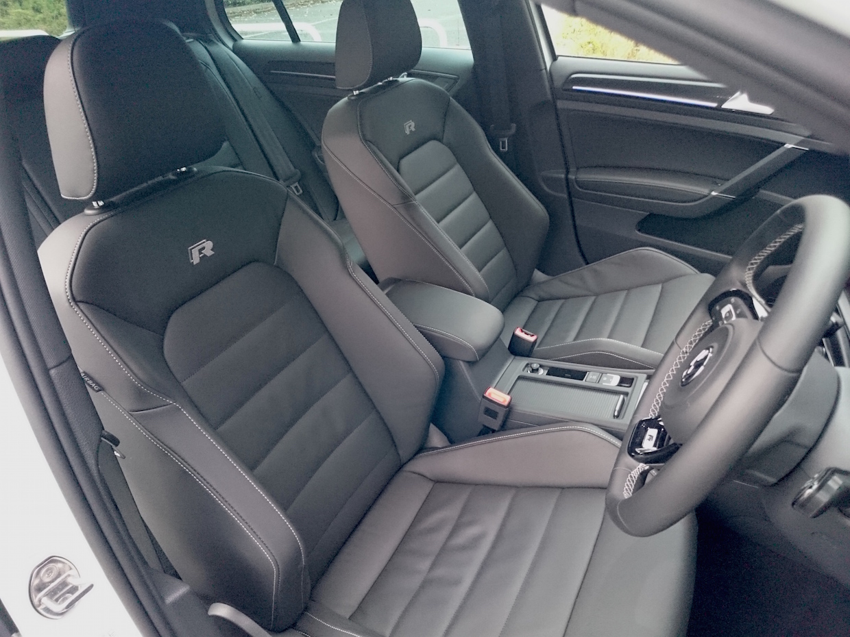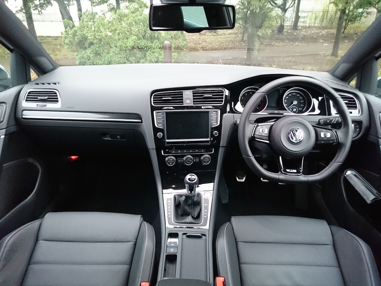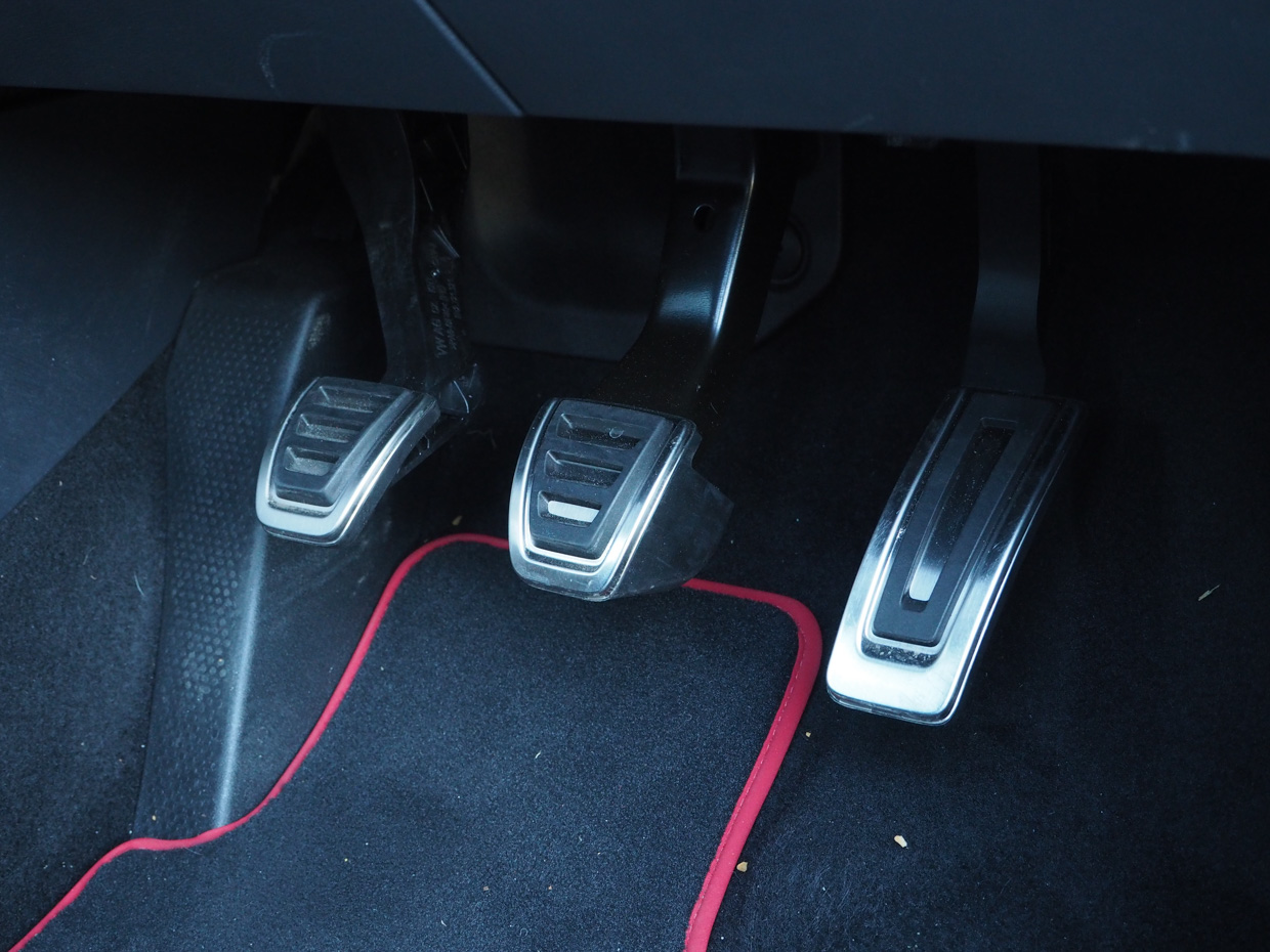 お次はゴルフR。ポロよりボディサイズが大きいこともあって、ペダルのレイアウトは自然。全く違和感ありません。何より、このシフトレバーがいいですね。ゴルフボールをアレンジしたかのようなシフトノブは、押しても引いても手に馴染む形状。巧い造形です。