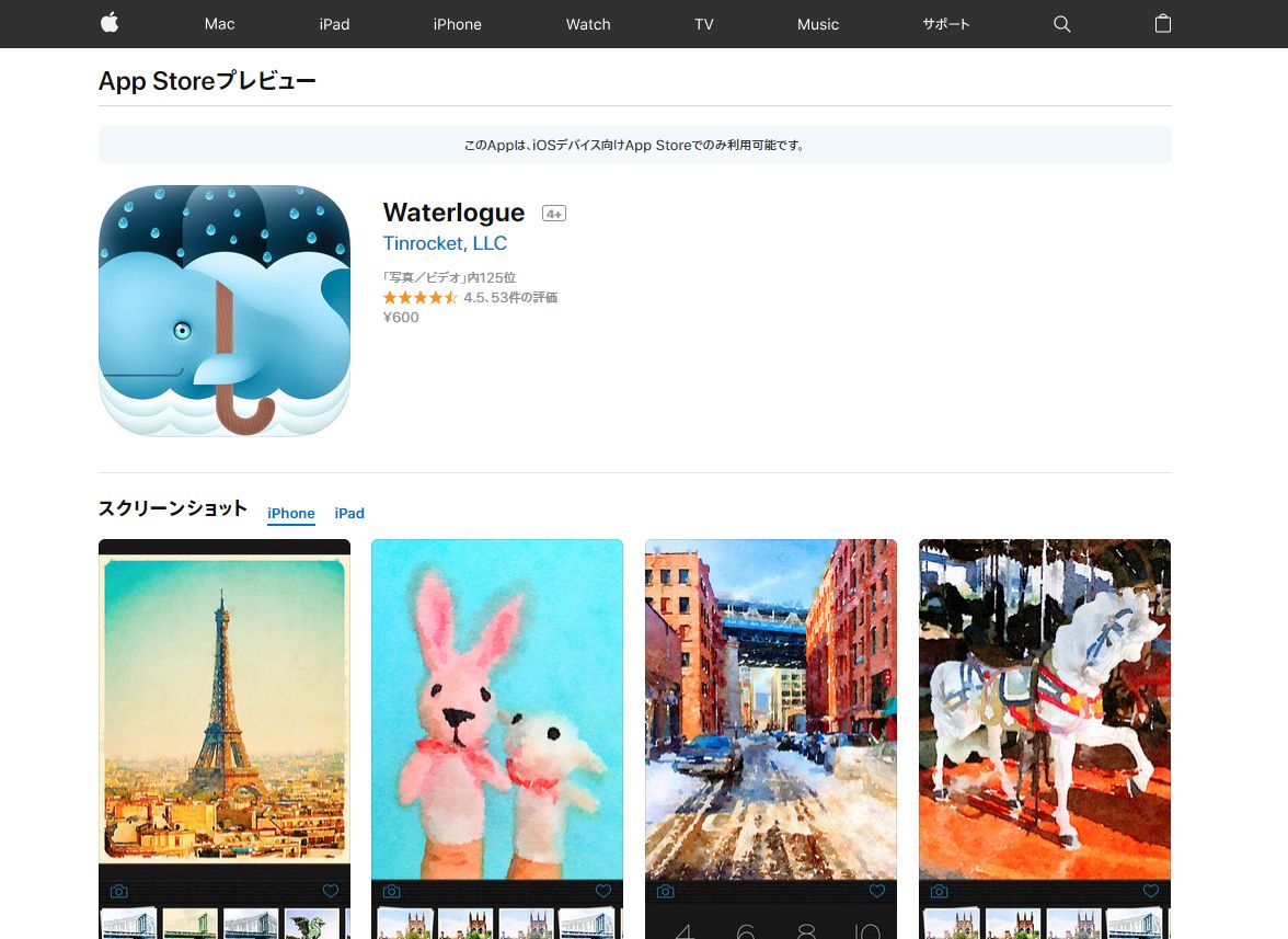 ▲App Storeで「Waterlogue」(600円)をインストール