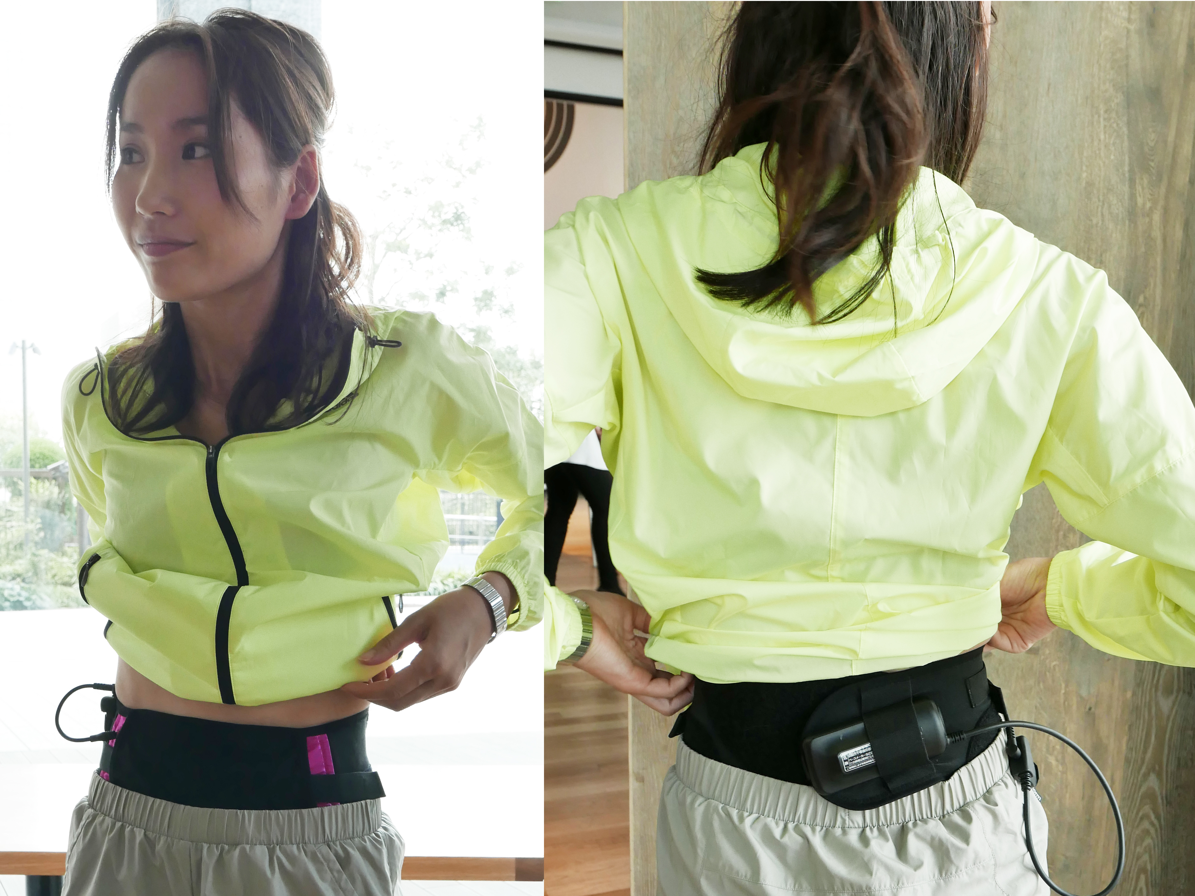 まずは、品川ランをサポートする拠点“ランキューブ”において、腰に巻いてランやウォーキングするだけで美しい腹筋を手に入れられるというパナソニックのトレーニングギア「ビューティトレーニング ES-WB60」(3万5000円前後)を無料でレンタル。早速、腹部に装着し、品川シーズンテラス内でウォーキングしてみました。