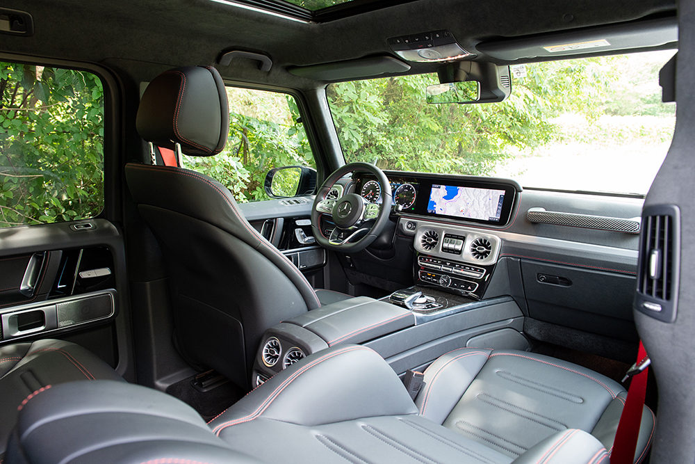 フロントのピラーが立っているクルマは、風切り音が気になったり、空気抵抗が悪くなったりするものですが、新型Gクラスの車内は、高い静粛性が保たれます。ただし、G63は低いエンジン音が聞こえてくるので、それが気になる人もいるかも。