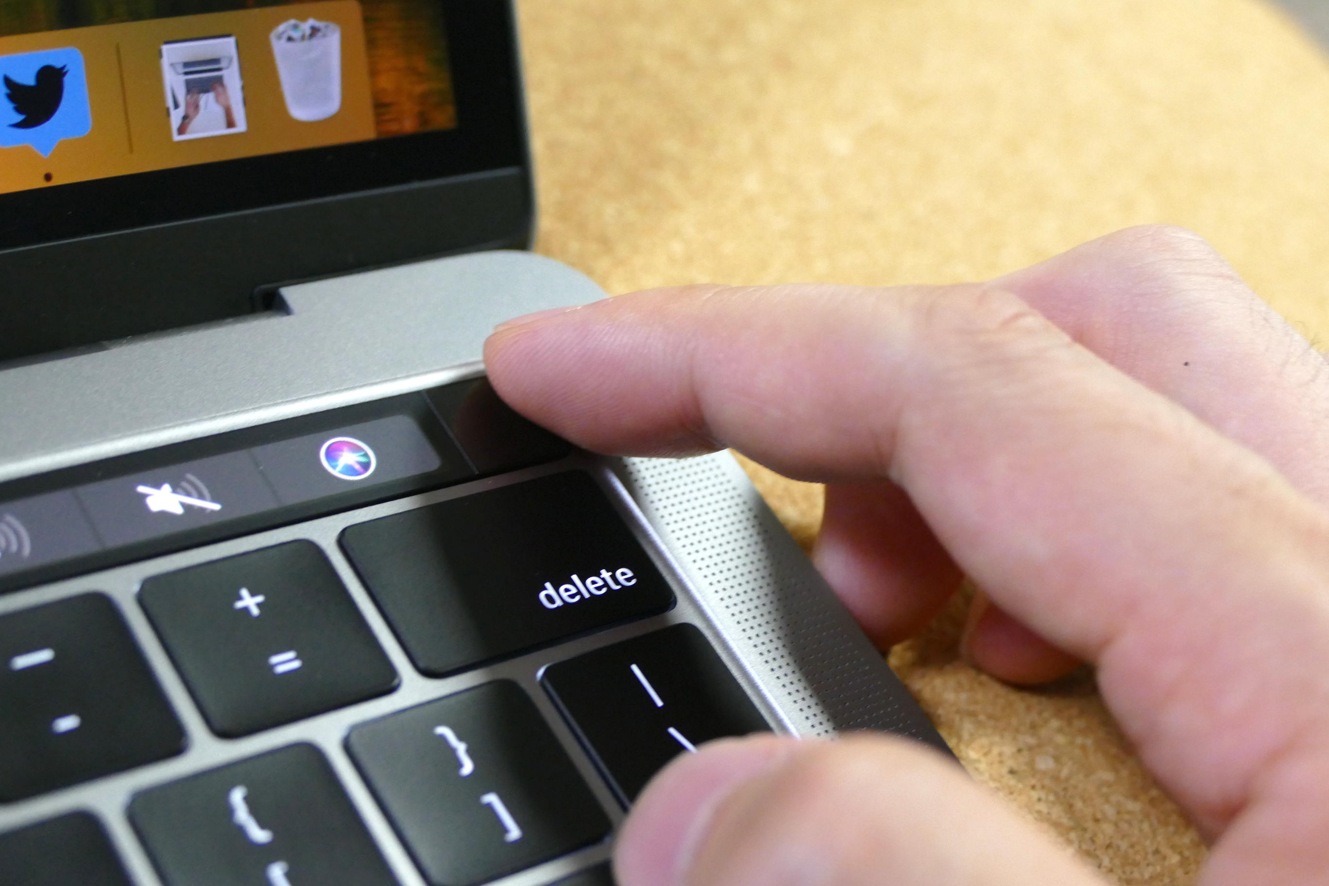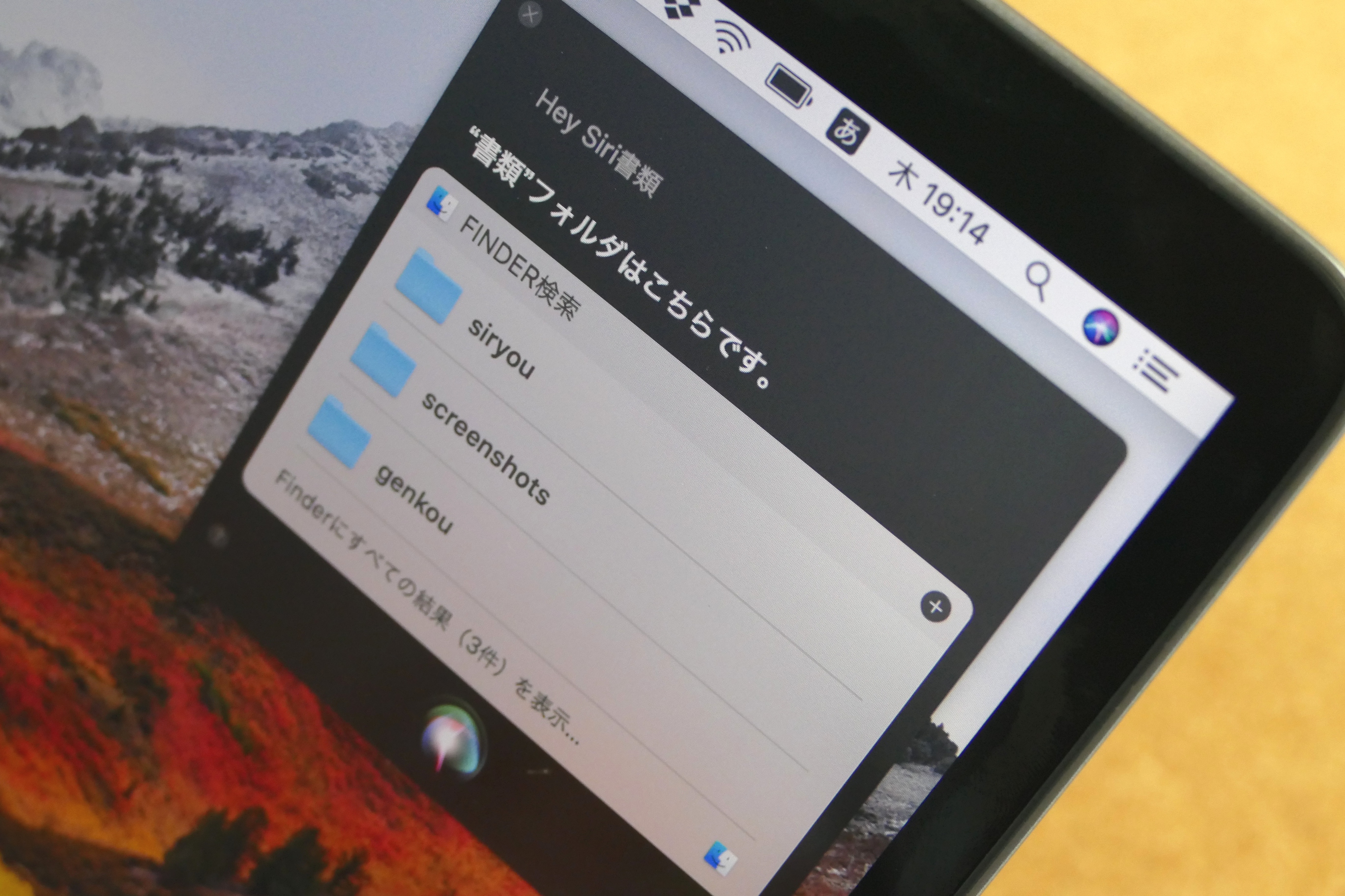 「あれ、あのフォルダどこだっけ?」と探す作業では、結構な時間を浪費してしまうもの。そこでSiriに手伝ってもらうのが、イマドキなやり方です。Touch Barの右端には、Siriボタンが表示されていて、これをタップするとSiriが起動します。